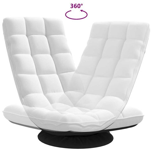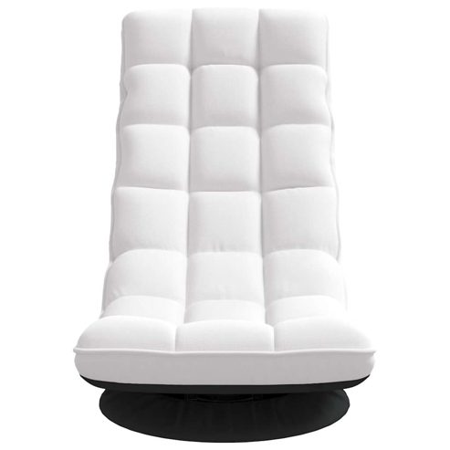 Erlebe Bequemlichkeit und Komfort mit diesem drehbaren Bodenstuhl! Bequemer und stabiler Halt: Dieser Bodensessel verfügt über einen langlebigen Metallrahmen für stabilen Halt und eine weiche, pflegeleichte Stoffpolsterung und bietet dauerhaften Komfort und Zuverlässigkeit.Manuelle Liegefunktion: Dieses Bodensofa ist speziell mit 5 Liegepositionen ausgestattet, sodass du die Rückenlehne und Kopfstütze manuell nach deinem Komfort einstellen kannst.Drehbares Design: Mit seinem um 360° drehbaren Fuß ermöglicht der klappbare Bodenstuhl, dass du dich in jede Richtung drehen kannst, ohne den Stuhl verlassen zu müssen, und bietet so Flexibilität und Komfort.Klappbares Design: Der gepolsterte Bodenstuhl lässt sich zur bequemen Aufbewahrung und zum Transport einfach zusammenklappen.Breite Anwendungen: Der Bodenstuhl eignet sich für eine Vielzahl von Aktivitäten - ob du nun Videospiele spielst, meditierst, liest, entspannst, Yoga machst, fernsiehst oder an Seminaren und Diskussionsgruppen im Büro teilnimmst. Er passt sich an all deine Sitzbedürfnisse an. ** Farbe: Weiß ** Material: Stoff (100 % Polyester), Metall ** Füllmaterial: Schaumstoff, Faser ** Abmessungen (stehend): 70 x 51 x 79 cm (L x B x H) ** Abmessungen (liegend): 110 x 51 x 55 cm (L x B x H) ** Länge der Rückenlehne: 77 cm ** Sitzhöhe vom Boden: 23 cm ** Durchmesser des Ständers: 45 cm ** Max. Belastbarkeit: 110 kg ** Zusammenbau erforderlich: Ja