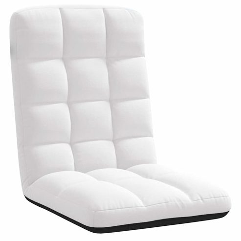 Erlebe Komfort und Vielseitigkeit mit diesem klappbaren Bodenstuhl. Bequemer und stabiler Halt: Dieser Bodensessel verfügt über einen langlebigen Metallrahmen für stabilen Halt und eine weiche, pflegeleichte Stoffpolsterung und bietet dauerhaften Komfort und Zuverlässigkeit.Manuelle Liegefunktion: Dieses Bodensofa ist speziell mit 5 Liegepositionen ausgestattet, sodass du die Rückenlehne und Kopfstütze manuell nach deinem Komfort einstellen kannst.Klappbares Design: Der gepolsterte Bodenstuhl lässt sich zur bequemen Aufbewahrung und zum Transport einfach zusammenklappen.Breite Anwendungen: Der Bodenstuhl eignet sich für eine Vielzahl von Aktivitäten - ob du nun Videospiele spielst, meditierst, liest, entspannst, Yoga machst, fernsiehst oder an Seminaren und Diskussionsgruppen im Büro teilnimmst. Er passt sich an all deine Sitzbedürfnisse an. ** Farbe: Weiß ** Material: Stoff (100 % Polyester), Metall ** Füllmaterial: Schaumstoff, Faser ** Abmessungen (stehend): 71 x 51 x 62 cm (L x B x H) ** Abmessungen (liegend): 112 x 51 x 12 cm (L x B x H) ** Sitztiefe: 44 cm ** Max. Belastbarkeit: 110 kg ** 5-fach verstellbar ** Zusammenbau erforderlich: Ja
