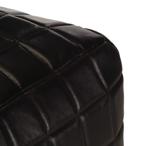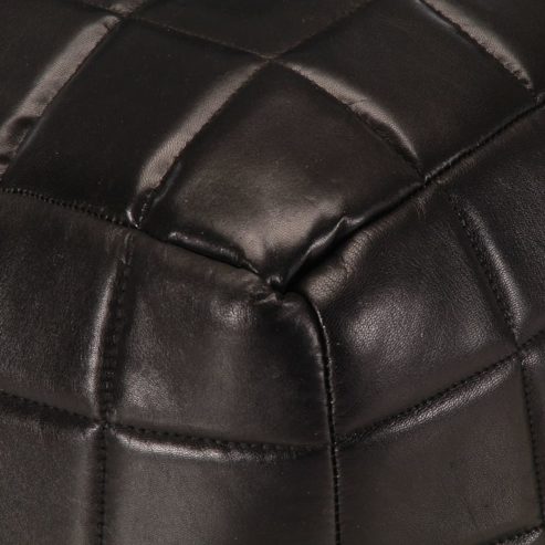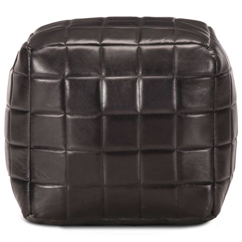 Setzen Sie sich auf den Pouf oder legen Sie die Füße darauf und entspannen Sie sich! Der moderne und trendige Pouf wird eine praktische sowie dekorative Ergänzung zu Ihrer Wohnungseinrichtung sein. Der Fußhocker ist aus echtem Ziegenleder gefertigt und mit Baumwolle gefüllt, was optimalen Komfort gewährleistet. Stellen Sie den Pouf vor ein Sofa oder einen Sessel, um so ein gemütliches und wohnliches Ambiente in jedem Zimmer zu schaffen! ** Farbe: Schwarz ** Material: Echtes Ziegenleder ** Füllmaterial: Baumwolle ** Maße: 40 x 40 x 40 cm (L x B x H) ** Handgefertigt ** Vintage-Look