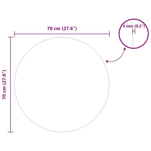 Dieser Wandspiegel vereint modernes Design mit praktischer Funktionalität. Er ist perfekt für alle, die Schönheit in Einfachheit und Nützlichkeit schätzen. Der rahmenlose Spiegel aus glattem Einscheibensicherheitsglas reflektiert die Umgebung nahtlos. Sein minimalistisches Design passt in jeden Raum, gibt dem Bad Helligkeit oder sorgt im Wohnzimmer für einen weitläufigen Effekt. Eine tolle Wahl für alle, die ihrem Zuhause einen modernen Touch verleihen möchten. Einscheibensicherheitsglas: Aus hochwertigem glas hergestellt, bietet der Spiegel eine robuste und langlebige Oberfläche. Das sorgt dafür, dass er gegen alltägliche Stöße resistent ist. Das Glas verleiht dem Spiegel einen klaren Reflex und hebt die Schönheit jedes Raumes, den er verschönert. Rahmenloses Design: Kein Rahmen bedeutet, dass die schlanken Linien des Spiegels betont werden. Das gibt jedem Raum einen modernen, minimalistischen Look und ermöglicht eine flexible Anordnung. Der rahmenlose Stil schafft ein großzügiges Gefühl und lässt die Räume größer und heller wirken. EVA-Schaumpolsterung: Jeder Spiegel hat auf der Rückseite EVA-Schaum, der für zusätzliche Polsterung und Rutschfestigkeit sorgt. Das garantiert Stabilität und mindert die Sorge über eventuelle Bewegungen oder Stürze. Nur für den Innenbereich: Entwickelt für den Innenbereich, ist der Spiegel perfekt für Bäder oder Wohnzimmer, um die Dekoration zu verbessern. Sein Design fügt modernen Stil in verschiedene Innenräume ein. Einfache Pflege: Der Spiegel hat eine glatte Oberfläche, die leicht zu reinigen ist. Regelmäßiges Abwischen mit einem trockenen Tuch erhält seine makellose Erscheinung, verbessert die Langlebigkeit und Brillanz im Laufe der Zeit. So bleibt er frisch und elegant und bewahrt seinen ursprünglichen Charme. ** Material: Gehärtetes Glas ** Gesamtabmessungen: 70 x 70 cm (B x H) ** Dicke: 4 mm ** Form: Rund ** Gewicht: 4,67 kg ** Rahmenlos ** Mit EVA-Schaum für zusätzlichen Komfort und Rutschfestigkeit ** Nur für den Innenbereich ** Lieferumfang: ** 1 x Wandspiegel ** 2 x Schrauben und Dübel