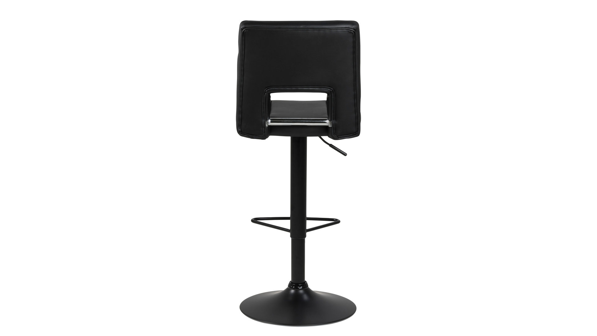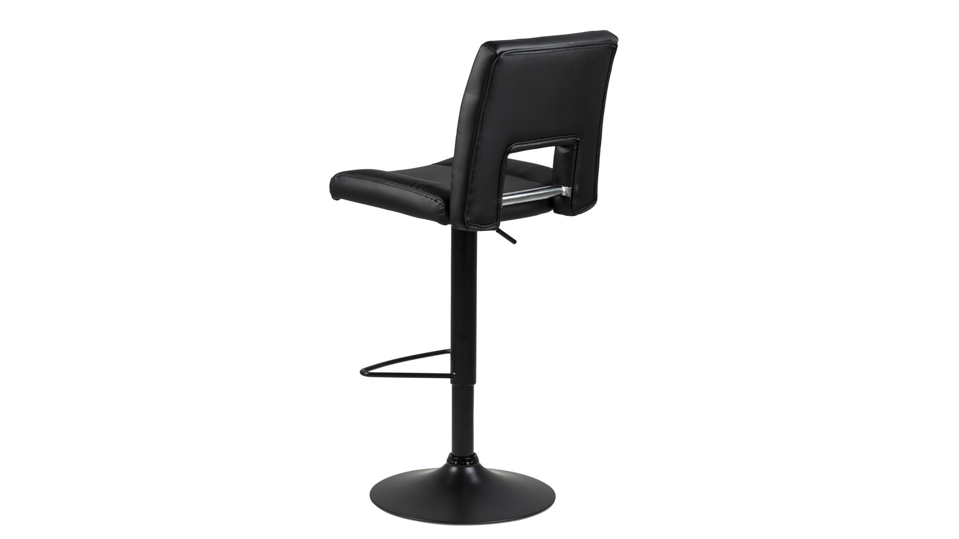 Dann ist dieser modische Barhocker Ihre erste Wahl. Der schlichte schwarze Kunstlederbezug gibt Ihnen die Freiheit, den Drehhocker mit Ihrem Einrichtungsstil zu kombinieren. Die hochwertig verarbeitete mattschwarze Fußstütze sorgt beim Sitzen für zusätzlichen Halt. Durch den mattschwarz pulverbeschichteten Trompetenfuß erhält der Dreh-Barhocker ein zeitgemäßes Design.