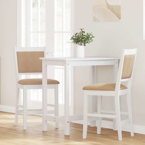 Diese Barhocker zeichnen sich durch ein zeitloses, ergonomisches Design aus, das außergewöhnlichen Komfort und Halt bietet und somit eine perfekte Ergänzung für jeden Raum in deinem Zuhause darstellt. Robustes und stabiles Material: Gummibaum-Massivholz ist ein wunderschönes Naturmaterial. Gummibaumholz besitzt eine dichte Maserung und ist stoßfest und langlebig.Bequemes Sitzerlebnis: Die mitgelieferten Kissen sorgen für maximalen Sitzkomfort, der dir hilft, dich nach einem anstrengenden Tag zu entspannen.Ergonomisches Design: Diese Stühle verfügen über bequeme Rückenlehnen, die den Rücken auch bei längerem Sitzen entlasten.Breite Anwendungen: Ob du deine Mahlzeit im Esszimmer genießt oder im Wohnzimmer liest und entspannst, diese Barstühle können deine Bedürfnisse perfekt erfüllen. ** Farbe: Weiß und Braun ** Material: Massives Gummibaumholz, Stoff (100 % Polyester) ** Füllung: Schaumstoff ** Abmessungen: 50 x 52 x 104 cm (B x T x H) ** Sitzfläche: 50 x 42 cm (B x T) ** Sitzhöhe vom Boden: 63 cm ** Maximale Belastbarkeit (pro Sitz): 110 kg ** Zusammenbau erforderlich: Ja ** Lieferung umfasst: ** 2 x Barhocker