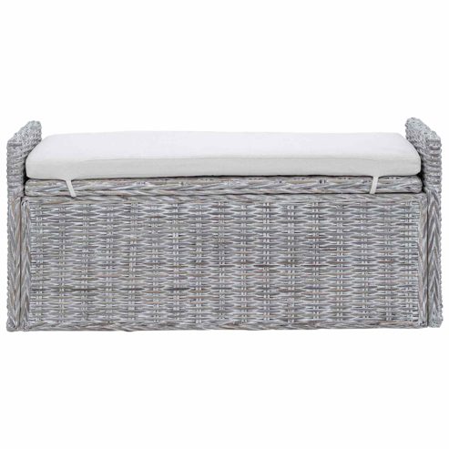 vidaXL Sitzbank mit Stauraum Weiß gewaschen 110 x 40 x 50 cm Rattan