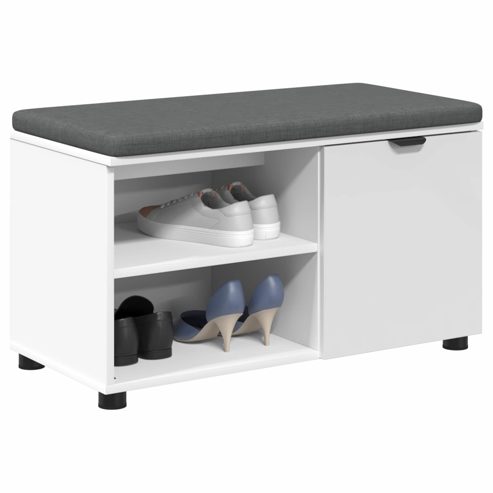 Diese schicke, moderne Flurmöbelbank ist perfekt, um Ihren Flur oder Eingangsbereich aufzuwerten. Sie kombiniert Funktionalität mit schicker Einfachheit. Dank der klaren Linien und des schlanken Designs, das mit einer matten Oberfläche und neutralen Farben harmoniert, passt sie super in moderne Wohnräume. Diese vielseitige Bank bietet Sitzplätze und versteckten Stauraum und ist die perfekte Lösung für alle, die Wert auf einen guten Mix aus Form und Funktion legen. Glatte Oberfläche: Die Bank hat eine coole, glatte Außenseite, die schlichte Eleganz ausstrahlt. Damit ist sie einfach zu reinigen und fügt sich gut in verschiedene Einrichtungsstile ein. Materialwahl: Sie wird aus robustem Holz für Rahmen und Oberfläche hergestellt und ist dadurch langlebig. Der matte Holzrahmen sorgt für eine schicke Ausstrahlung und lange Lebensdauer. Die Auswahl der Materialien garantiert eine dauerhafte Präsenz in Ihrem Zuhause. Praktischer Stauraum: Der reichlich große Stauraum macht diese Bank nicht nur zur Sitzgelegenheit, sondern auch zu einem nützlichen Möbelstück. Mit Regalen können Benutzer Schuhe, Hüte oder Taschen ordentlich verstauen und halten den Eingangsbereich aufgeräumt. Zugang zu Stauraum: Praktische Klapptüren erleichtern den Zugang zu den Stauraum. Die robusten Kunststoff-Knöpfe sehen gut aus und halten viele Jahre. Das Kissen hat einen Reißverschluss, der das Abnehmen und Reinigen erleichtert. Pflegehinweise: Vermeiden Sie abrasive Reiniger, um die Oberflächen zu schonen. Mit unkomplizierten Pflegehinweisen bleibt die Bank langfristig ein schönes und praktisches Möbelstück in Ihrem Zuhause. ** Farbe: Weiß ** Oberfläche: Matt ** Gesamtabmessungen: 80 x 38 x 46 cm (L x B x H) ** Gewicht: 16,2 kg ** Reichlich Stauraum ** Rahmenmaterial: Holz ** Max. Gewicht: 110 kg pro Sitz ** Nur für den Innenbereich