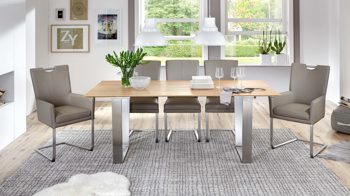 Der Armlehn-Schwingstuhl Charly präsentiert sich modern und stilvoll designt. Darüber hinaus weiß er in puncto Komfort zu überzeugen. Ein Edelstahlgestell bildet die robuste Basis. Das widerstandsfähige Material sorgt für die nötige Stabilität und die klassische Farbgebung bringt edles Flair in den Raum. Attraktiv abgerundet wird der Schwingstuhl durch den taupefarbenen Webstoffbezug. Die sanfte Trendfarbe wirkt äußerst elegant und harmoniert bestens mit dem Gestell. Einen feinen Akzent setzt die Steppnaht im Rücken des Schalensitzes.