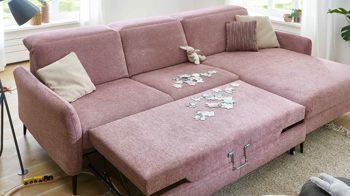 • Die Abbildung zeigt ein Wohnbeispiel, welches auch Dekoration sowie separat erhältliches Zubehör enthält. Im Lieferumfang enthalten ist der Mehrpreis für den Bezug der Liegefläche im Originalstoff.
