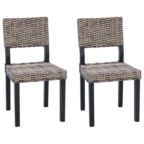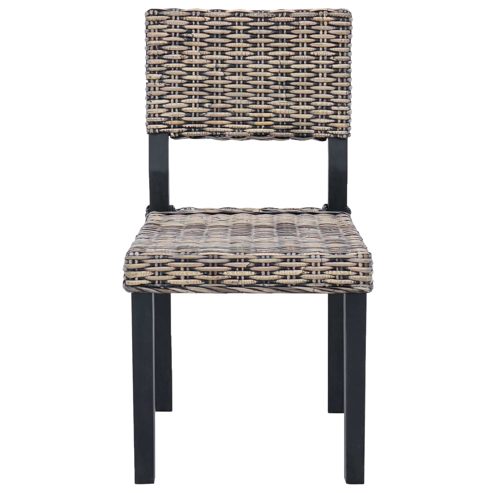 Dieser moderne Essstuhl mit hoher Rückenlehne vereint Eleganz und Funktionalität und passt sich perfekt deinem Wohn- oder Küchenbereich an. Die klaren Linien und das schlichte Design verleihen ihm einen edlen Look, der jedem Raum Klasse verleiht. Das handgewebte Rattan sorgt für ein ansprechendes Aussehen und seine Langlebigkeit – ein zeitloses Stück, das zu jedem Stil und Geschmack passt. Materialien: Dieser Essstuhl kombiniert Kubu-Rattan und massives Mahagoni. So erhält er die natürliche Schönheit von Rattan und die Stabilität von Mahagoni. Das sorgt für einen ansprechenden Look und eine Struktur, die langlebig und widerstandsfähig ist. Langlebige Merkmale: Der massive Holzrahmen hält bis zu 300lb aus, ideal für den täglichen Gebrauch. Die unterstützende Rückenlehne gibt deinem Rücken Halt und sorgt für einen entspannten Aufenthalt, was das Ess-Erlebnis besonders macht. Funktionale Designelemente: Mit seiner bequemen, integrierten Fußstütze ermöglicht der Stuhl entspanntes Sitzen und bietet zusätzlichen Halt beim Essen oder geselligen Beisammensein. Besonders praktisch für hohe Tische oder Bars, sorgt er für ein tolles Esserlebnis. Vielseitige Nutzung: Ideal für die Küche und das Wohnzimmer, ergänzt der moderne Stil des Stuhls verschiedene Einrichtungsstile. Mit seinem schlanken Design passt er in jeden noch so engen Raum und ist somit eine tolle Ergänzung für kompakte Wohnsituationen. Pflegehinweise: Einfach in der Pflege! Wisch die Oberfläche mit einem weichen, trockenen Tuch ab, um die Schönheit zu erhalten. Vermeide spitze Chemikalien oder nasse Reinigung, damit das Rattan und das Mahagonifinish lange schön bleiben. ** Farbe: Schwarz gewaschen ** Material: Kubu Rattan ** Rahmenmaterial: Holz ** Beinmaterial: Holz ** Gesamtabmessungen: 46 x 55 x 84 cm (L x B x H) ** Sitzbreite: 45 cm ** Sitztiefe: 44 cm ** Sitzhöhe vom Boden: 45 cm ** Rückenhöhe: 39 cm ** Max. Gewicht: 220 kg ** Langlebig ** Handgewebtes Rattandesign ** Unterstützende Rückenlehne ** Montage erforderlich: Ja ** Lieferumfang: ** 2 x Esszimmerstuhl