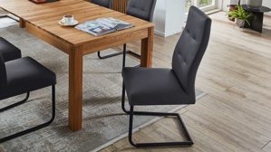 dunkelgrauer Stoffbezug in Lederoptik, kombiniert mit mattschwarz lackiertem Metall