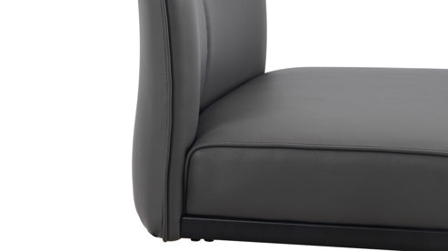 grauer Kunstlederbezug und schwarzes Metallgestell
