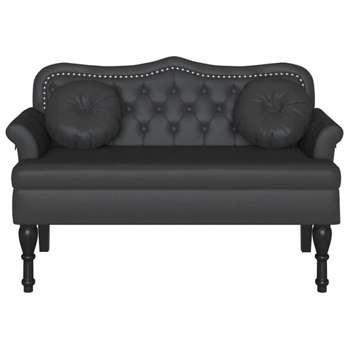 Die Chesterfield-Bank aus Kunstleder vereint klassische Eleganz mit moderner Funktionalität und ist eine tolle Bereicherung für jeden Raum. Mit ihrem gepolsterten Knopfdesign und der rechteckigen Form verleiht die Bank jedem Schlafzimmer oder Wohnzimmer einen Hauch von Raffinesse. Die dick gepolsterte Sitzfläche sorgt für maximalen Komfort, perfekt zum Entspannen oder als stylisches Element. Ihr zeitloses Design bringt nicht nur Charme, sondern auch Vielseitigkeit und passt sich ganz leicht verschiedenen Einrichtungsstilen an, egal ob als zusätzliche Sitzgelegenheit oder als dekorativer Hingucker. Materialien: Diese Bank aus Kunstleder ist aus hochwertigem Kunstleder gefertigt und hat eine hübsche, aber robuste Oberfläche. Das Material ist flecken- und kratzfest, sodass die Bank immer gut aussieht. Unter der Bank befindet sich ein stabiler Pappelrahmen, der mit soliden Kautschukholzbeinen verstärkt ist und für langlebige Unterstützung sorgt. Inklusive Komponenten: Die Bank kommt mit einem bequemen Kissen und schick gerollten Armlehnen, vereint also Komfort und Stil. Das Kissen aus Schaumstoff bedeckt die gesamte Bank und bietet gleichmäßige Unterstützung. Jedes Detail, von den Beinen bis zur Rückenlehne, wurden sorgfältig durchdacht, um den ästhetischen Wert zu erhöhen und eine tolle Benutzerfreundlichkeit zu gewährleisten. Eigenschaften / Funktion / Design: Das schicke Knopfdesign an Sitz und Rücken bringt Eleganz in jedes Zuhause. Die traditionellen Details der Bank passen sowohl zu klassischen als auch zeitgenössischen Stilen, während der stabile Rahmen für sicheren Halt sorgt. Sie eignet sich für Wohnzimmer, Eingangsbereiche und Schlafzimmer und ist sowohl eine echte Augenweide als auch eine praktische Sitzgelegenheit. Empfohlene Verwendungen: Ideal für den Innenbereich in Wohnzimmern oder Schlafzimmern, ist diese Bank perfekt als Sitzgelegenheit und zur Dekoration. Ihr Design ergänzt jeden Einrichtungsstil und bietet zusätzliche Plätze für Gäste oder wirkt als Akzentstück, das Eleganz verleiht. Sie ist vielseitig einsetzbar, egal ob beim Lesen oder beim Treffen mit Freunden, und bietet somit eine tolle Kombination aus Eleganz und Funktionalität. Pflege & Wartung: Die Pflege dieser Bank ist kinderleicht. Einfach mit einem feuchten Tuch wischen, um Staub oder Flecken zu entfernen, ohne dir Sorgen um Rückstände machen zu müssen. Regelmäßige Pflege verlängert die Lebensdauer und sorgt dafür, dass sie ein schöner Blickfang in deinem Zuhause bleibt. Minimale Wartung sorgt dafür, dass die Bank dein Dekor harmonisch ergänzt. ** Farbe: Schwarz ** Material: Kunstleder ** Rahmenmaterial: Sperrholz ** Füllmaterial: Schaum ** Beinmaterial: Massivholz Kautschukbaum ** Gesamtabmessungen: 120,5 x 65 x 75 cm (L x B x H) ** Sitzbreite: 96, 5 cm ** Sitztiefe: 48 cm ** Armlehnenhöhe vom Sitz aus: 13 cm ** Rückenhöhe: 33, 5 cm ** Max. Gewicht: 220 kg ** Sitzplatzkapazität: 2 ** Langlebig ** Fleckenabweisender Stoff ** Kratzfeste Oberflächen ** Stylische Knopfheftung ** Dick gepolsterter Sitz ** Montage erforderlich: Ja ** Lieferumfang: ** 1 xBank ** 2 xKissen