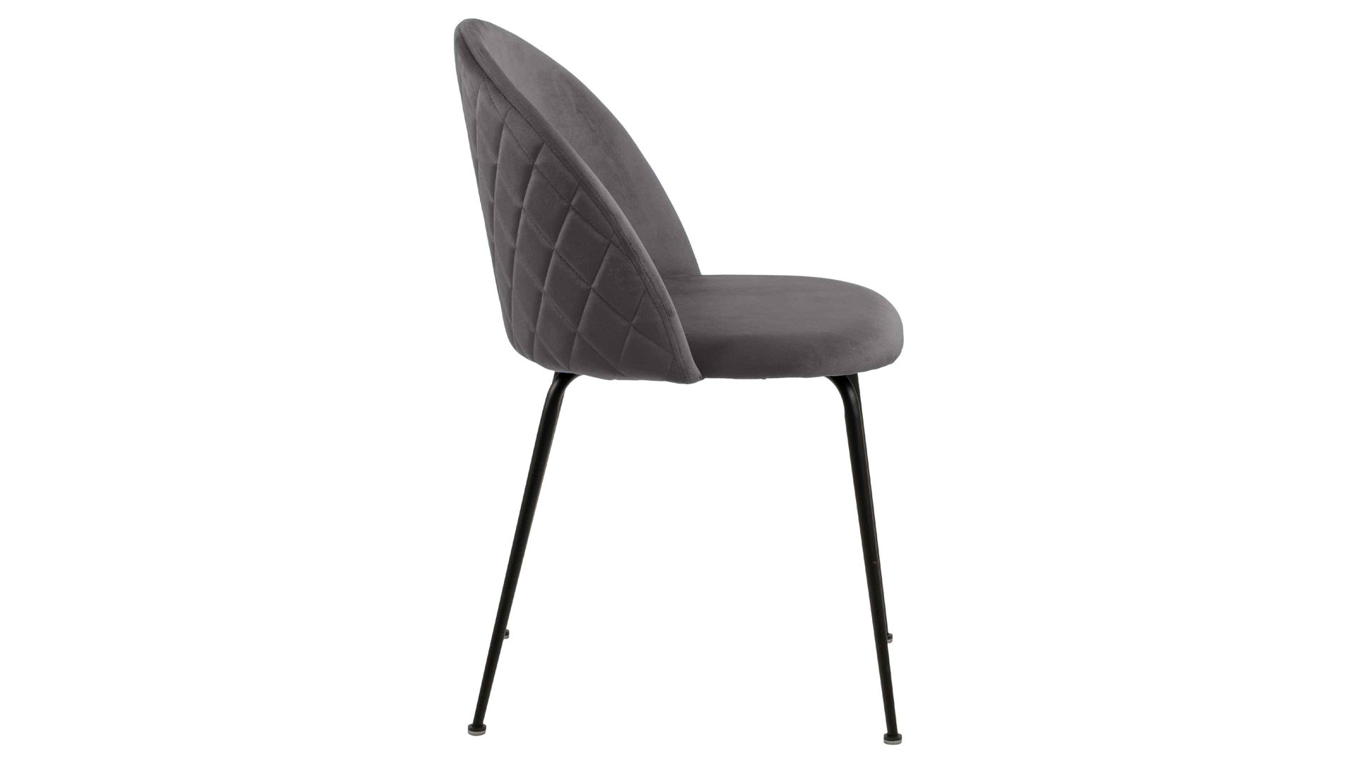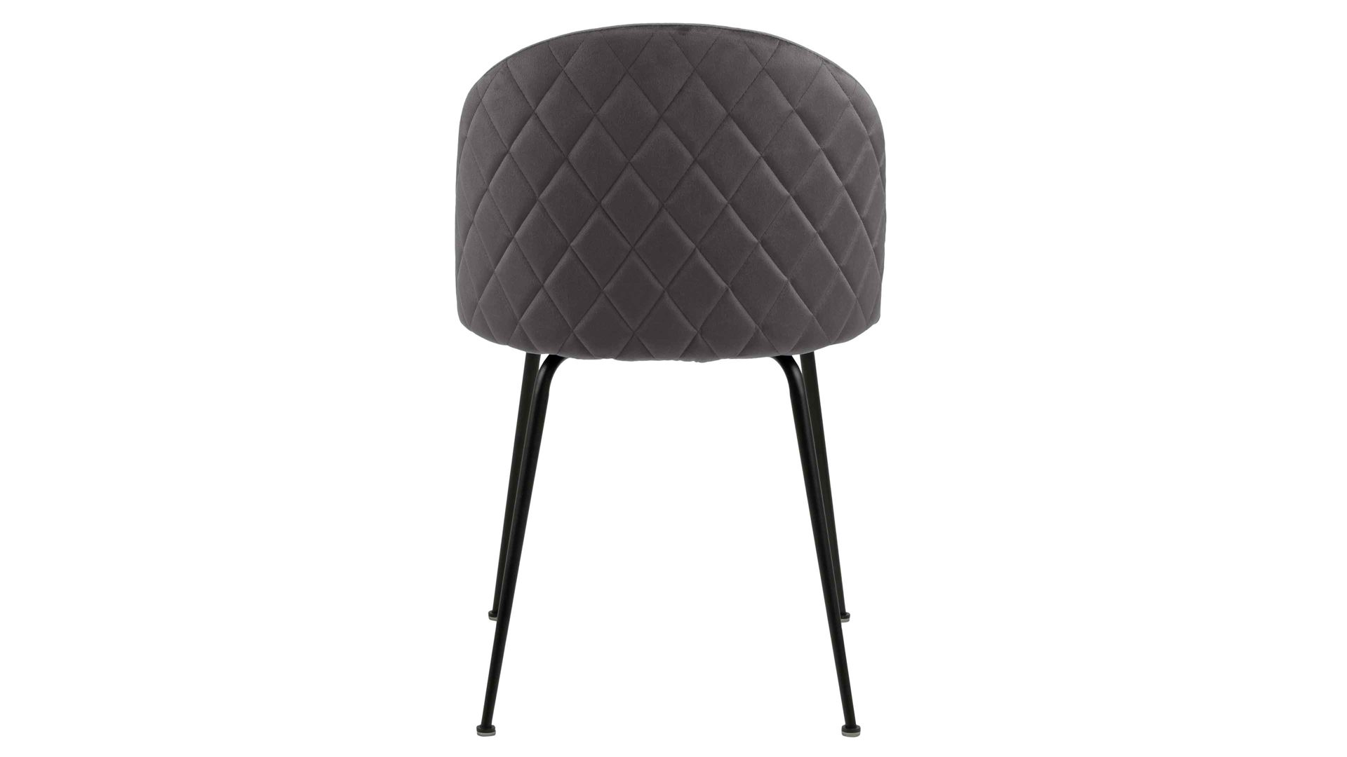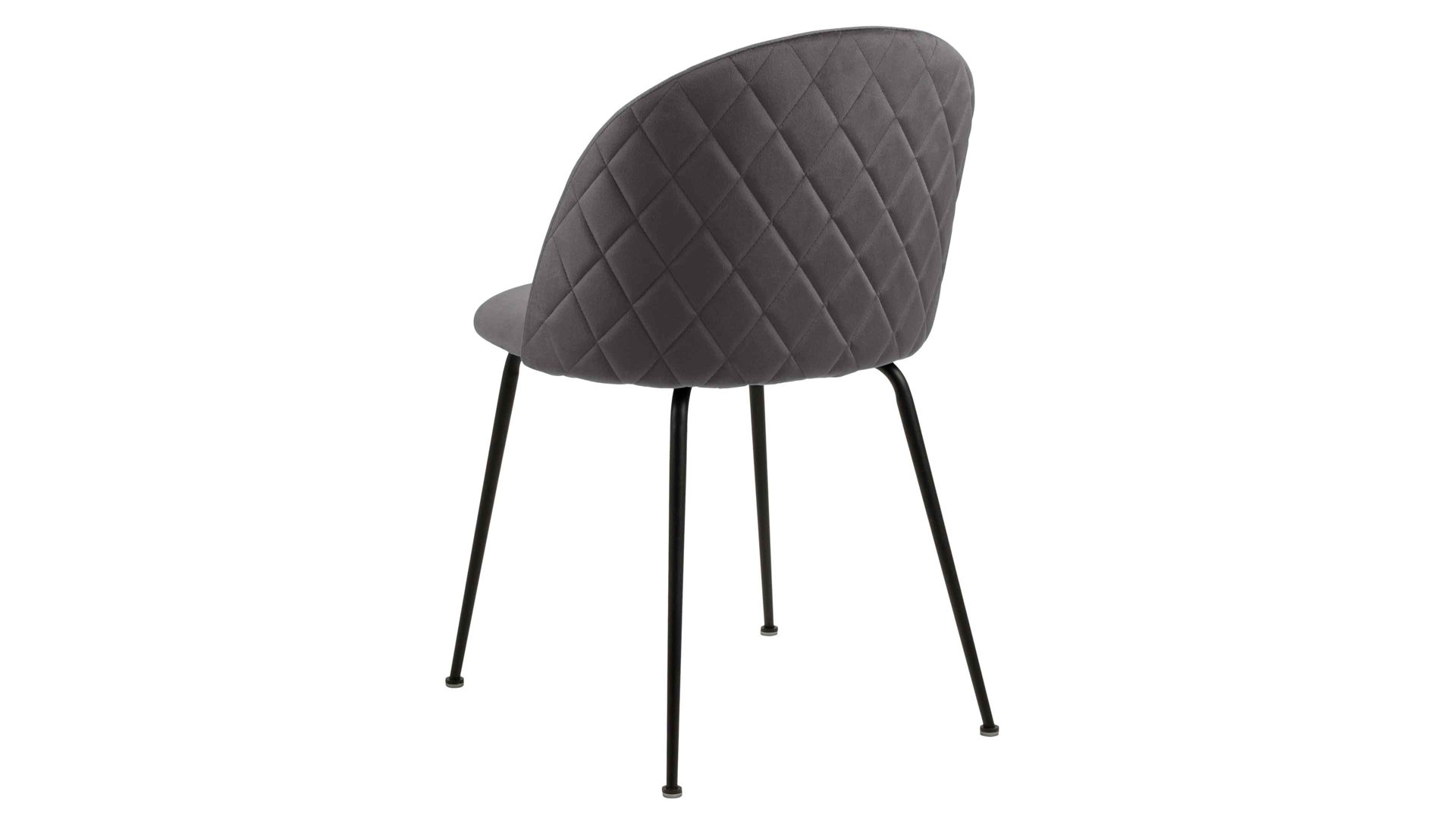 Dabei harmoniert der Polsterstuhl in seiner sanften Formensprache mit zahlreichen Einrichtungsstilen. Moderne Geradlinigkeit ergänzt er ebenso stimmig wie den beliebten Vintage-Trend. Auch farblich erlaubt der Esszimmerstuhl Louise angenehme Freiheit beim Kombinieren: Dafür sorgt der dunkelgraue Bezug Dublin 40 in Samtoptik, der sowohl die Sitzfläche als auch die Rückenlehne umhüllt. Auf der Rückseite setzt eine Harlekinsteppung einen charmanten Blickfang. Die rau pulverbeschichteten Metallfüße ergänzen das Gesamtbild in dezentem Schwarz.