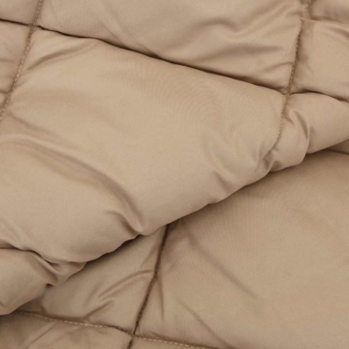 Diese coole Winterdecke ist eine echte Bereicherung für jedes Schlafzimmer. Sie bietet viel Wärme und Komfort, gerade in den kalten Monaten. Mit ihrem modernen Design und dem gesteppten Muster sieht sie nicht nur gut aus, sondern bleibt auch funktional. Die Decke ist weich, leicht und atmungsaktiv, was bedeutet, dass du warm bleibst, ohne dass es zu heiß wird. Ideal für alle, die Komfort und Stil lieben. Mikrofaser-Gewebe: Die Decke ist aus 100 % Mikrofaser-Polyester gemacht und sorgt für einen sanften Griff sowie angenehmen Komfort. So wird Schlafen richtig gemütlich. Die leichte und atmungsaktive Beschaffenheit reguliert die Temperatur bestens und hält dich warm, ohne dass du überhitzt. Polyesterfüllung: Mit ihrer Polyesterfüllung bietet die Decke super Isolierung, die Wärme gut speichert. Die leichte Füllung verteilt die Wärme gleichmäßig, sodass kalte Stellen keine Chance haben und du immer die richtige Schlaftemperatur hast. Gestepptes Design: Dank des tollen gesteppten Musters bleibt die Füllung der Decke dort, wo sie hingehört. Das verhindert, dass sich die Füllung verschiebt oder verklumpt und sorgt für längere Haltbarkeit und einfachere Pflege, damit du gut schlafen kannst. Oeko-Tex-Wärme: Die Decke ist Oeko-Tex-zertifiziert, was bedeutet, dass sie frei von schädlichen Chemikalien ist. So kannst du sicher sein, dass du in einer gesunden Umgebung schläfst, was für viele wichtig ist. Einfache Pflege: Die Decke ist super pflegeleicht – einfach in die Waschmaschine und dann in den Trockner. Die ursprüngliche Textur und das Aussehen bleiben erhalten, damit du immer Freude daran hast. ** Farbe: Taupe ** Material: Mikrofaser ** Gesamtabmessungen: 220 x 155 cm (L x B) ** Extra weich ** Faltenresistent ** Feuchtigkeitsabsorbierend ** Antiallergisch ** Das Steppmuster sorgt für eine gleichmäßige Gestaltung ** Oeko-Tex warm ** Füllmaterial: Polyesterfüllung ** Nur für den Innenbereich ** Lieferumfang: ** 1 x Winterdecke