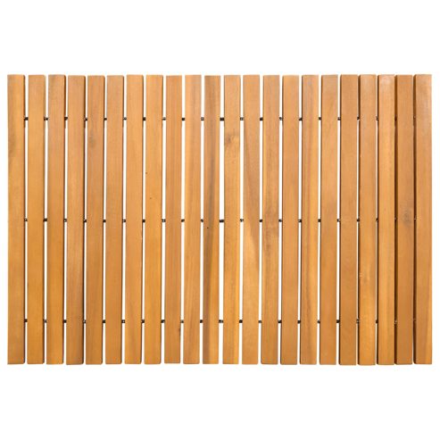 Diese Holz-Badematte ist eine tolle Bereicherung für jedes Badezimmer oder jeden Balkon und kombiniert Einfachheit mit Stil durch ihr minimalistisches Design. Das Holz fühlt sich glatt an und gibt deinem Raum einen Hauch von Wärme. Sie ist sowohl für drinnen als auch für draußen gedacht und ist perfekt für alle, die ihren Wohnraum schick und funktional gestalten wollen. Der natürliche Braunton passt zu jedem Dekor, und ihre praktischen Eigenschaften machen sie ideal für Badezimmer und mehr. Holzkonstruktion: Diese Badematte ist aus Holz und sorgt für Langlebigkeit und eine natürliche Optik. Die geölte Oberfläche bringt die Farbe zur Geltung und schützt vor Feuchtigkeit, sodass die Matte auch langfristig gut aussieht. Belüftetes Design: Damit die Matte schnell trocknet, ist sie so gestaltet, dass sie den Luftstrom fördert und Wasseransammlungen verhindert. Das macht sie perfekt für feuchte Umgebungen wie Badezimmer. So bleibt die Oberfläche trocken und sicher, was den Nutzungskomfort erhöht. Aufrollbar und leicht zu lagern: Das aufrollbare Design der Matte erlaubt eine kompakte Lagerung, wenn sie nicht benötigt wird. Super für alle, die Platz sparen oder flexibel bleiben wollen, erleichtert das die Nutzung noch mehr. Rutschfeste Sicherheit: Die Matte hat eine rutschfeste Unterlage, die sicheren Halt bietet, auch wenn der Boden nass ist. Das senkt das Risiko von Stürzen und ist besonders wichtig in Haushalten mit Kindern und älteren Menschen. Einfach zu reinigen: Einfach mit einem feuchten Tuch abwischen und das Aussehen bewahren. Scharfe Chemikalien und übermäßiges Schrubben vermeiden, um die Oberfläche zu schonen und die Pflege zu erleichtern. ** Farbe: Braun ** Material: Holz ** Oberfläche: Geölt ** Gesamtabmessungen: 60 x 40 cm (L x B) ** Belüftetes Design ** Vielseitige Nutzungsszenarien ** Einfach zu reinigen und zu trocknen ** Rutschfeste Gestaltung ** Rollen und leicht verstauen ** Für Innen- und Außenbereich ** Lieferumfang: ** 2 x Badematte