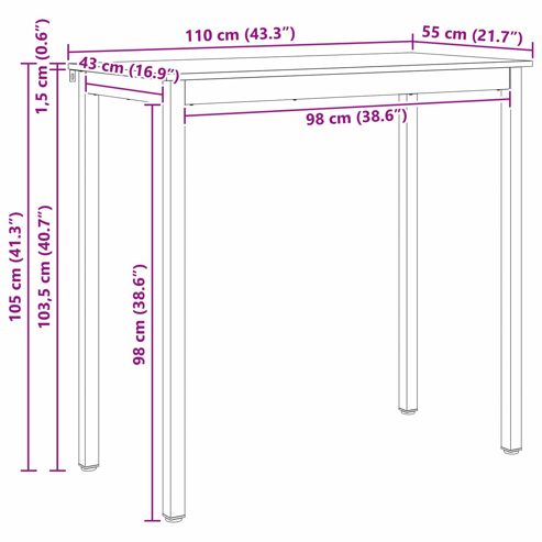 Dieser moderne Bartisch mit seinen klaren Linien und schlichtem Design bringt Schwung in dein Esszimmer oder deine Küche. Die elegante Tischplatte vereint Schlichtheit und Funktionalität und schafft eine gemütliche Atmosphäre zum Essen oder für Gäste. Mit einer robusten Metallkonstruktion kombiniert er industriellen Charme mit heimischem Flair – der ideale Mittelpunkt für alle, die einen minimalistischen Stil lieben. Massivholz Kiefer Die Tischplatte aus hochwertigem, massivem Kiefernholz ist nicht nur langlebig, sondern auch super hübsch und passt perfekt zum Alltagsgebrauch. Die natürliche Maserung macht jedes Stück einzigartig. Moderne Metallbeine Die quadratischen Metallbeine sorgen für eine coole, minimalistische Ästhetik und bieten ein stabiles Fundament, damit nichts wackelt. H-förmige Balkenunterstützung Der H-förmige Balken unter der Tischplatte sorgt für hohe Stabilität und hilft, die massive Tischplatte perfekt zu unterstützen. So ist er für alle Zusammenkünfte geeignet. Für innen geeignet Dieser Bartisch ist nur für drinnen gedacht und passt super in Küchen oder Esszimmer. Er lässt sich leicht in lässige oder formelle Essbereiche integrieren und sieht überall gut aus. Einfache Pflegehinweise Das edle Design ist ganz leicht zu reinigen – ein trockenes Tuch reicht völlig aus. So hast du mehr Zeit zum Genießen mit Familie und Freunden. ** Farbe: Natur ** Material: Massives Kiefernholz ** Gesamtabmessungen: 110 x 55 x 105 cm (L x B x H) ** Gewicht: 14,62 kg ** H-förmiger Balken ** Max. Gewicht: 80 kg ** Nur für den Innenbereich ** Lieferumfang: ** 1 x Bartisch ** Montage erforderlich: Ja