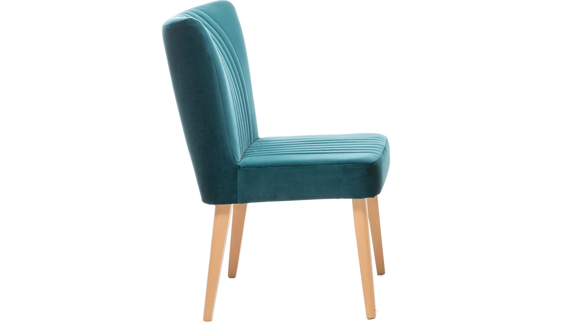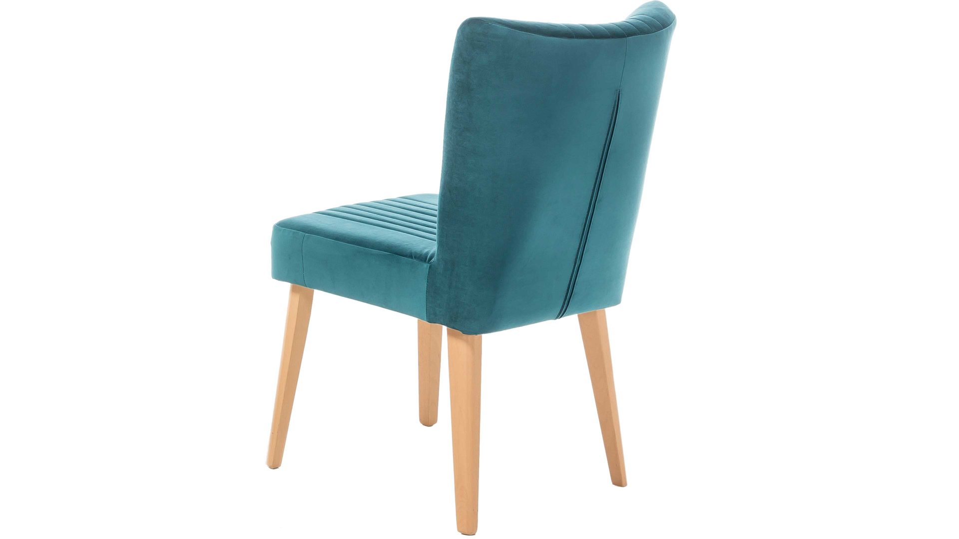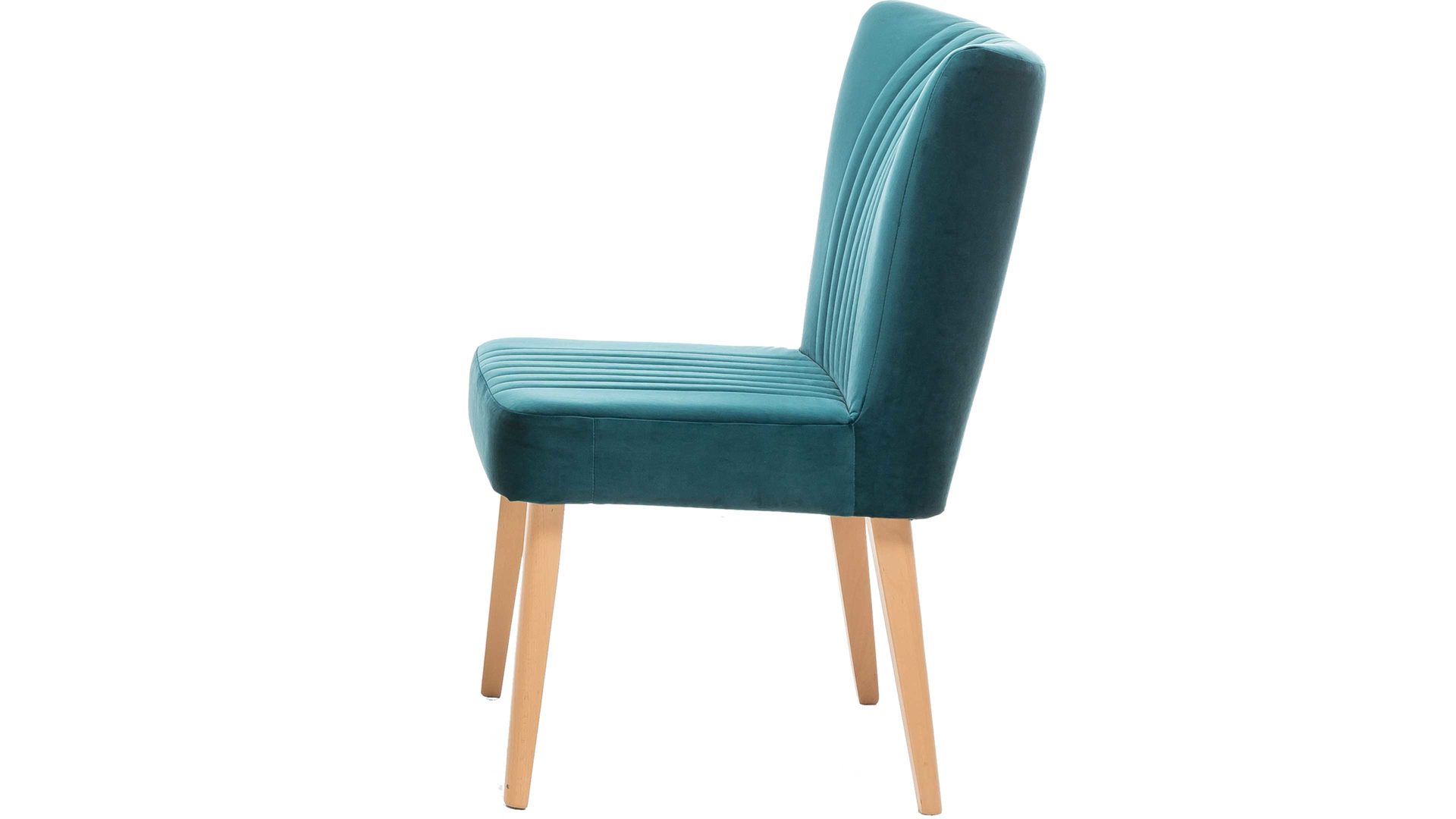 Ein farblicher Hingucker ist der hochwertige Polsterstuhl mit petrolfarbenem Bezug im modernen Samtlook. Aufwendige Steppnähte, die auf Sitz und Rücken angebracht sind, geben dem Sitzmöbel zusätzlich eine interessante Optik. Am besten passt der Polsterstuhl mit den Maßen von ca. 46 x 92 x 66 cm (BxHxT) an einen Esstisch aus Eiche, da auch das Holzgestell aus Eiche natur ist.