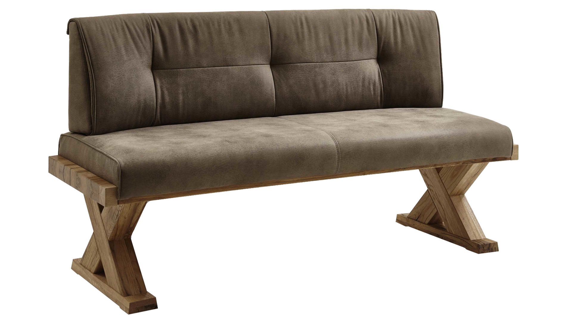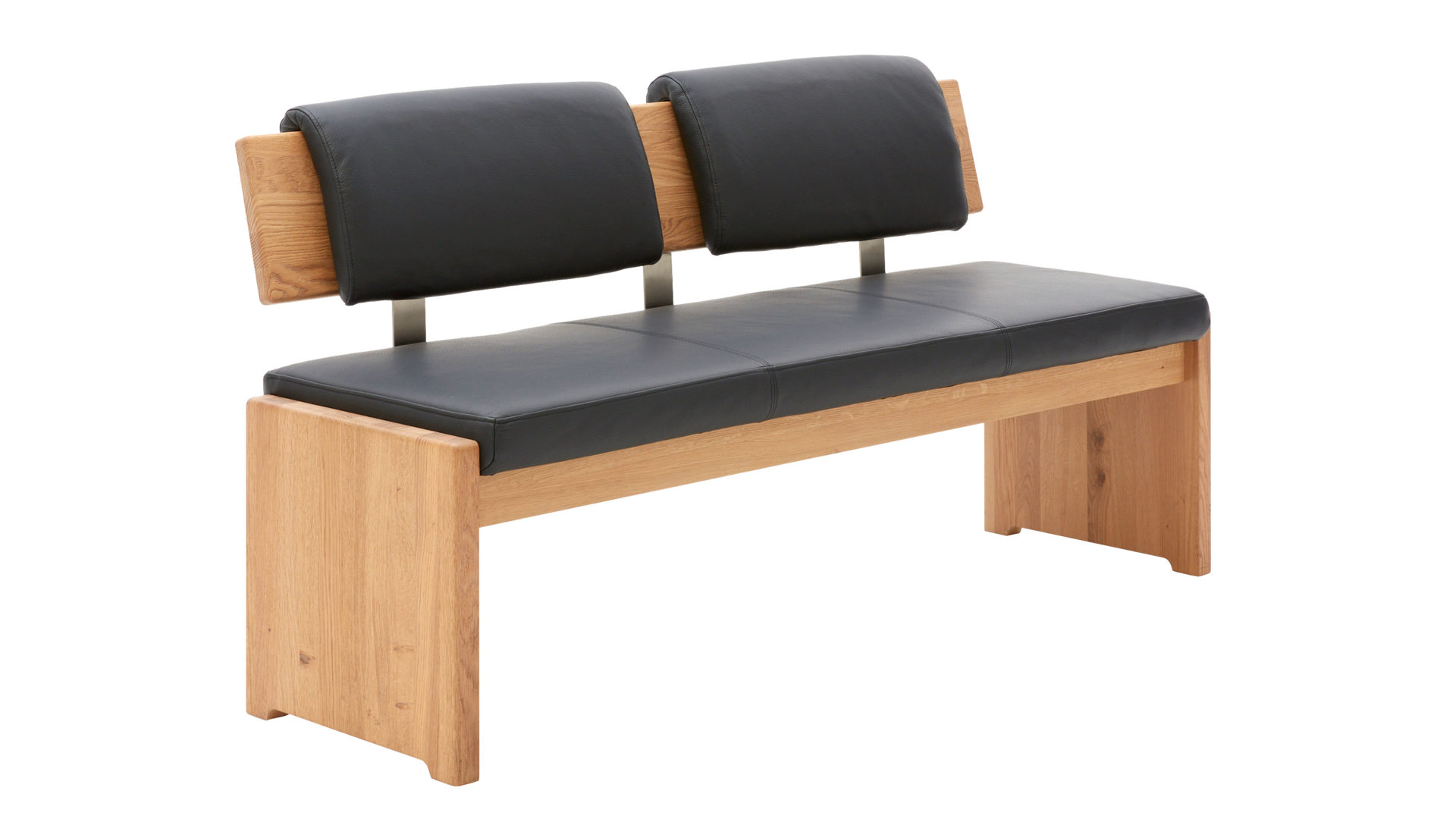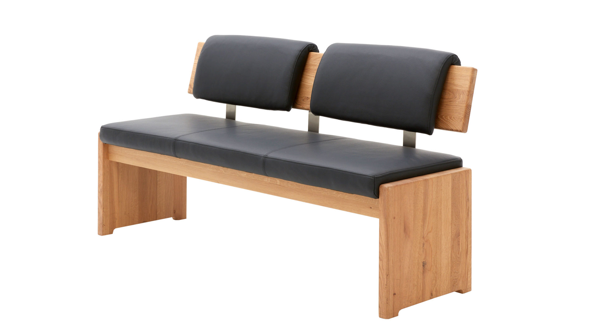 Für den gewünschten hohen Sitzkomfort sorgen zum einen die feste Schaumpolsterung des Lederbezugs und zum anderen die beiden abnehmbaren Rückenkissen, die jeweils ca. 60 cm breit sind. Insgesamt misst die edle Dinerbank ca. 160 x 84 x 61 cm (LxHxT); die Sitzhöhe beläuft sich auf ca. 49 cm, die Sitztiefe liegt bei ca. 45 cm. Dank des umfangreichen Typenplans mit der attraktiven Bezugauswahl können Sie die Polsterbank individuell an Ihre Vorlieben anpassen. Weitere Esszimmermöbel bzw. Sitzmöbel erhalten Sie mit der Produktnummer 347231-203.