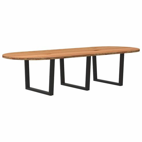 Mach jede Mahlzeit unvergesslich, indem du dich jeden Tag mit deiner Familie oder deinen Freunden um diesen Esstisch aus Holz versammelst! Robustes und langlebiges Material: Massives Eichenholz ist für seine Festigkeit, Haltbarkeit und schöne Maserung bekannt, weshalb es sich hervorragend für haltbare Möbel eignet. Durch seine natürliche Beständigkeit gegen Insektenbefall und Schimmelbildung sehen Eichenmöbel selbst nach jahrelangem Gebrauch brandneu aus.Großer Tisch: Dieser Küchentisch bietet mit seinen Maßen von 320 x 120 cm viel Platz zum Sitzen und ist das Herzstück deines Essbereichs.Einzigartiger Charme: Da Äste, Risse und Farbabweichungen natürliche Merkmale des Eichenholzes sind, hat jedes Stück dieses Produkts seinen ganz eigenen Charme. Auf den Bildern siehst du Beispiele für die zu erwartenden Variationen.Praktisches Design: Diese Esstischbeine sind mit verstellbaren Nivellierfüßen ausgestattet, die auch auf unebenen Böden für Stabilität sorgen und Bodenkratzer minimieren. Außerdem verfügt die Halterung über vorgebohrte Löcher und mitgelieferte Schrauben, mit denen das Bein an der Tischplatte befestigt werden kann, was die Montage erleichtert. Gut zu wissen:Jedes Stück ist ein Unikat, das in Farbe und Maserung variiert. Die Lieferung erfolgt in zufälliger Reihenfolge, wodurch die Exklusivität und Individualität deines Produkts gewährleistet wird.Äste und kleinere Fehler werden mit schwarzem Füllmaterial aufgefüllt, um eine schöne und glatte Tischoberfläche zu erhalten. Beispiele findest du in den Abbildungen.Die Tischplatte ist an den Rändern 4 cm dick, um ein robustes Aussehen zu gewährleisten, und in der Mitte 2 cm dick, um den Holzverbrauch und das Gesamtgewicht zu reduzieren.Bitte bohre die Löcher in der Mitte, nicht an den Rändern der Platte.Bitte achte darauf, die maximale Bohrtiefe von 15 mm nicht zu überschreiten, um die Tischplatte nicht zu beschädigen, da die Plattenstärke 20 mm beträgt.Wir empfehlen, einen Schraubendreher anstelle einer elektrischen Bohrmaschine zu verwenden, um Holzrisse beim Anbringen der Beine zu vermeiden. ** Gesamtabmessungen: 320 x 120 x 74 cm (L x B x H) ** Zusammenbau erforderlich: Ja ** Tischplatte: ** Farbe: Hellbraun ** Material: Massives Eichenholz, fein geschliffen und hell lackiert ** Max. Einschraubtiefe: 15 mm ** Keine vorgebohrten Löcher ** Form: Oval ** Gewicht: ca. 67 kg, mit +/-8% Toleranz ** Tischbeine: ** Farbe: Schwarz ** Material: Pulverbeschichteter Stahl ** Gesamtgröße: 100 x (72-73,3) cm (B x H) ** Abmessungen der Halterung: 1000 x 80 x 4 mm (L x B x T) ** Abmessungen der Röhre: 80 x 40 x 1 mm (L x B x T) ** V-förmig ** Mit verstellbaren Kunststoffnivellierern ** Lieferung beinhaltet: ** 1 x Tischplatte ** 3 x Tischbein ** 1 x Satz Befestigungsschrauben (M5 x 18 mm) für die Befestigung der Beine an der Tischplatte