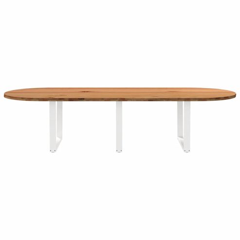 Mach jede Mahlzeit unvergesslich, indem du dich jeden Tag mit deiner Familie oder deinen Freunden um diesen Esstisch aus Holz versammelst! Robustes und langlebiges Material: Massives Eichenholz ist für seine Festigkeit, Haltbarkeit und schöne Maserung bekannt, weshalb es sich hervorragend für haltbare Möbel eignet. Durch seine natürliche Beständigkeit gegen Insektenbefall und Schimmelbildung sehen Eichenmöbel selbst nach jahrelangem Gebrauch brandneu aus.Großer Tisch: Dieser Küchentisch bietet mit seinen Maßen von 320 x 120 cm viel Platz zum Sitzen und ist das Herzstück deines Essbereichs.Einzigartiger Charme: Da Äste, Risse und Farbabweichungen natürliche Merkmale des Eichenholzes sind, hat jedes Stück dieses Produkts seinen ganz eigenen Charme. Auf den Bildern siehst du Beispiele für die zu erwartenden Variationen.Praktisches Design: Diese Esstischbeine sind mit verstellbaren Nivellierfüßen ausgestattet, die auch auf unebenen Böden für Stabilität sorgen und Bodenkratzer minimieren. Außerdem verfügt die Halterung über vorgebohrte Löcher und mitgelieferte Schrauben, mit denen das Bein an der Tischplatte befestigt werden kann, was die Montage erleichtert. Gut zu wissen:Jedes Stück ist ein Unikat, das in Farbe und Maserung variiert. Die Lieferung erfolgt in zufälliger Reihenfolge, wodurch die Exklusivität und Individualität deines Produkts gewährleistet wird.Äste und kleinere Fehler werden mit schwarzem Füllmaterial aufgefüllt, um eine schöne und glatte Tischoberfläche zu erhalten. Beispiele findest du in den Abbildungen.Die Tischplatte ist an den Rändern 4 cm dick, um ein robustes Aussehen zu gewährleisten, und in der Mitte 2 cm dick, um den Holzverbrauch und das Gesamtgewicht zu reduzieren.Bitte bohre die Löcher in der Mitte, nicht an den Rändern der Platte.Bitte achte darauf, die maximale Bohrtiefe von 15 mm nicht zu überschreiten, um die Tischplatte nicht zu beschädigen, da die Plattenstärke 20 mm beträgt.Wir empfehlen, einen Schraubendreher anstelle einer elektrischen Bohrmaschine zu verwenden, um Holzrisse beim Anbringen der Beine zu vermeiden. ** Gesamtabmessungen: 320 x 120 x 74 cm (L x B x H) ** Zusammenbau erforderlich: Ja ** Tischplatte: ** Farbe: Hellbraun ** Material: Massives Eichenholz, fein geschliffen und hell lackiert ** Max. Einschraubtiefe: 15 mm ** Keine vorgebohrten Löcher ** Form: Oval ** Gewicht: ca. 67 kg, mit +/-8% Toleranz ** Tischbeine: ** Farbe: Weiß ** Material: Pulverbeschichteter Stahl ** Gesamtgröße: 100 x (72-73,3) cm (B x H) ** Abmessungen der Halterung: 1000 x 80 x 4 mm (L x B x T) ** Abmessungen der Röhre: 80 x 40 x 1 mm (L x B x T) ** V-förmig ** Mit verstellbaren Kunststoffnivellierern ** Lieferung beinhaltet: ** 1 x Tischplatte ** 3 x Tischbein ** 1 x Satz Befestigungsschrauben (M5 x 18 mm) für die Befestigung der Beine an der Tischplatte
