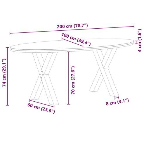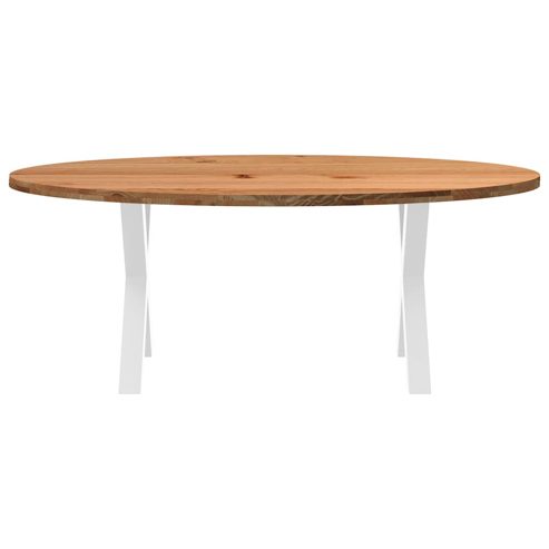 Mach jede Mahlzeit unvergesslich, indem du dich jeden Tag mit deiner Familie oder deinen Freunden um diesen Esstisch aus Holz versammelst! Robustes und langlebiges Material: Massives Eichenholz ist für seine Festigkeit, Haltbarkeit und schöne Maserung bekannt, weshalb es sich hervorragend für haltbare Möbel eignet. Durch seine natürliche Beständigkeit gegen Insektenbefall und Schimmelbildung sehen Eichenmöbel selbst nach jahrelangem Gebrauch brandneu aus.Großer Tisch: Dieser Tisch bietet mit seinen Maßen von 200 x 100 cm viel Platz zum Sitzen und ist das Herzstück deines Essbereichs.Einzigartiger Charme: Da Äste, Risse und Farbabweichungen natürliche Merkmale des Eichenholzes sind, hat jedes Stück dieses Produkts seinen ganz eigenen Charme. Auf den Bildern siehst du Beispiele für die zu erwartenden Variationen.Praktisches Design: Diese Esstischbeine sind mit verstellbaren Nivellierfüßen ausgestattet, die auch auf unebenen Böden für Stabilität sorgen und Bodenkratzer minimieren. Außerdem verfügt die Halterung über vorgebohrte Löcher und mitgelieferte Schrauben, mit denen das Bein an der Tischplatte befestigt werden kann, was die Montage erleichtert.Robustes und stabiles Gestell: Dieser Esszimmertisch hat X-förmige Beine aus pulverbeschichtetem Stahl, die für außergewöhnliche Stabilität und Sicherheit sorgen. Gut zu wissen:Jedes Stück ist ein Unikat, das in Farbe und Maserung variiert. Die Lieferung erfolgt in zufälliger Reihenfolge, wodurch die Exklusivität und Individualität deines Produkts gewährleistet wird.Äste und kleinere Fehler werden mit schwarzem Füllmaterial aufgefüllt, um eine schöne und glatte Tischoberfläche zu erhalten. Beispiele findest du in den Abbildungen.Die Tischplatte ist an den Rändern 4 cm dick, um ein robustes Aussehen zu gewährleisten, und in der Mitte 2 cm dick, um den Holzverbrauch und das Gesamtgewicht zu reduzieren.Bitte bohre die Löcher in der Mitte, nicht an den Rändern der Platte.Bitte achte darauf, die maximale Bohrtiefe von 15 mm nicht zu überschreiten, um die Tischplatte nicht zu beschädigen, da die Plattenstärke 20 mm beträgt.Wir empfehlen, einen Schraubendreher anstelle einer elektrischen Bohrmaschine zu verwenden, um Holzrisse beim Anbringen der Beine zu vermeiden. ** Gesamtmaße: 200 x 100 x 74 cm (L x B x H) ** Zusammenbau erforderlich: Ja ** Tischplatte: ** Farbe: Hellbraun ** Material: Massives Eichenholz, fein geschliffen und hell lackiert ** Max. Einschraubtiefe: 15 mm ** Keine vorgebohrten Löcher ** Form: Oval ** Gewicht: ca. 32 kg, mit +/-8% Toleranz ** Tischbeine: ** Farbe: Weiß ** Material: Pulverbeschichteter Stahl ** Gesamtgröße (pro Stück): 60 x 72 cm (B x H) ** Abmessungen der Halterung: 140 x 140 x 4 mm (L x B x T) ** Abmessungen der Röhre: 80 x 80 x 1,2 mm (L x B x T) ** X-Form ** Verstellbare Kunststoffnivellierer ** Lieferung umfasst: ** 1 x Tischplatte ** 2 x Tischbein ** 1 x Satz Befestigungsschrauben (M5 x 18 mm) für die Befestigung der Beine an der Tischplatte