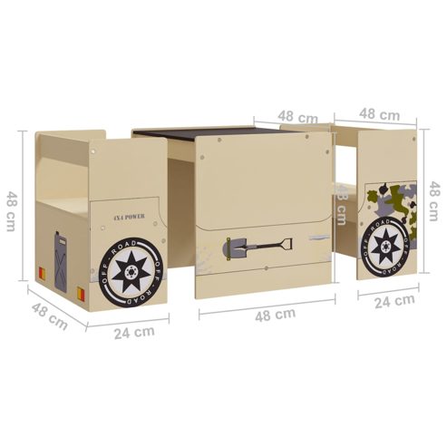 vidaXL 3-tlg. Kindertisch und Stuhl Set Geländewagen-Design MDF