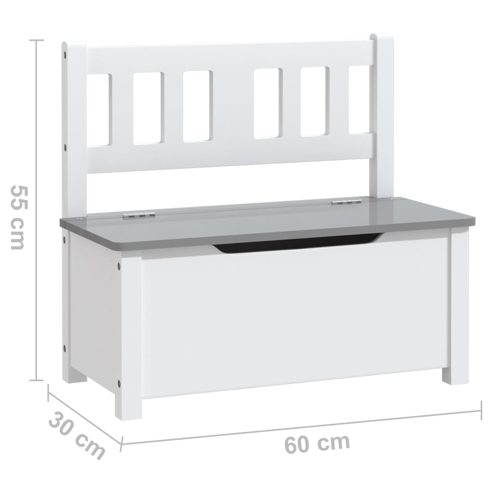 vidaXL Kinderbank mit Stauraum Weiß und Grau 60x30x55 cm MDF
