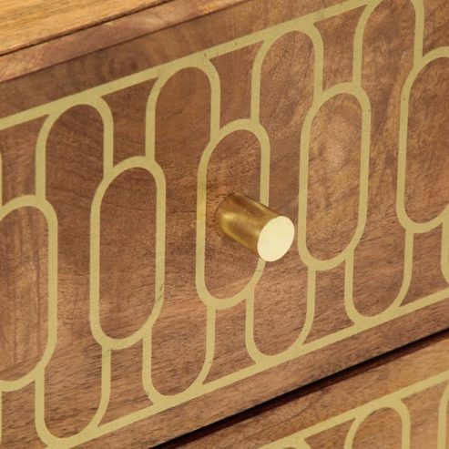 Diese Nachttische mit elegantem Design sind eine zeitlose Ergänzung deiner Inneneinrichtung. Massives Mangholz: Massives Mangoholz ist ein robustes, tropisches Hartholz, aus dem sich robuste Möbel herstellen lassen. Seine optisch ansprechende Holzmaserung macht jedes Möbelstück zu einem Unikat. Der Schrank ist aus massivem Mangoholz gefertigt und daher langlebig und stabil.Reichlich Stauraum: Der Nachttisch ist mit 2 Schubladen ausgestattet, um verschiedene Sachen ordentlich und griffbereit aufzubewahren.Stabile Oberplatte: Die Oberplatte des Beistellschranks bietet den perfekten Platz, um Dekoartikel, Bilderrahmen und Topfpflanzen zur Schau zu stellen.Starke Beine: Die Eisenbeine tragen zur Robustheit und Stabilität der Nachtkommode bei.Retro-Stil: Mit einem handgeschnitzten Blumenmuster versehen, bringt dieser Nachttisch den Luxus des Retro-Stils in dein Interieur und wird überall ein echter Hingucker sein. Gut zu wissen:Jedes Stück ist ein Unikat, das in Farbe und Maserung variiert. Die Lieferung erfolgt in zufälliger Reihenfolge, wodurch die Exklusivität und Individualität deines Produkts gewährleistet wird. ** Material: Massives Mangoholz mit honigbraunem Finish, Holzwerkstoff, Eisen ** Abmessungen: 40 x 33 x 46 cm (B x T x H) ** Mit handgeschnitztem Muster ** Zusammenbau erforderlich: Ja ** Lieferung umfasst: ** 2 x Nachttisch