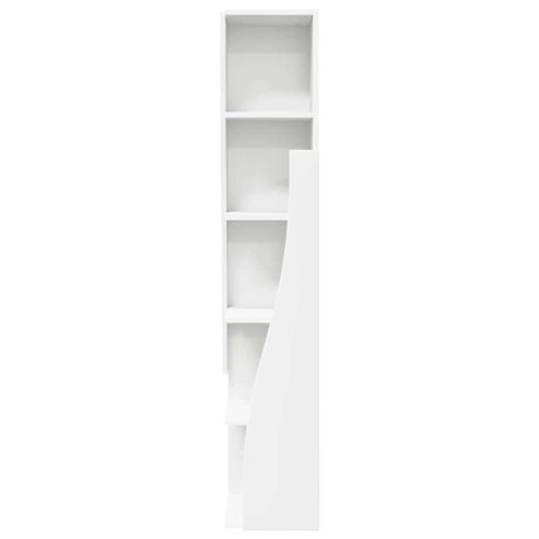 Dieser moderne Eckschrank verbindet stylisches Design mit praktischen Aufbewahrungsmöglichkeiten. Sein schlankes Design passt ideal in Zimmerecken und nutzt Platz optimal, während er einen zeitgenössischen Flair in deine Wohnung bringt. Der minimalistische Stil passt super in moderne Wohnzimmer und erfüllt alle Bedürfnisse der Aufbewahrung mit seinen vielseitigen Regalen und Fächern. Material aus Holzwerkstoff: Der Schrank ist aus robustem Holzwerkstoff gefertigt und bietet langfristige Lagerlösungen. Das Material ist widerstandsfähig gegen Abnutzung und ergänzt verschiedene Einrichtungsstile mit seiner neutralen Farbpalette. Platzsparende Eckregale: Diese Regale passen perfekt in Wohnzimmerecken, um den Raum optimal zu nutzen. Sie sind ideal für Bücher, Deko oder alltägliche Gegenstände, die griffbereit und dennoch unsichtbar sein sollen. Das durchdachte Design maximiert die Funktionalität ohne ansprechende Ästhetik zu verlieren. Funktionale Aufbewahrungsmöglichkeiten: Mit mehreren Fächern zum Organisieren und Lagern von Gegenständen ist der Schrank perfekt für alle, die Eleganz und Funktionalität schätzen. Ob du Dekoartikel ausstellen oder wichtige Dinge lagern möchtest, er erfüllt viele Bedürfnisse. Minimalistisches Finish: Das saubere, matte Finish sorgt für einen modernen Look in deinem Zuhause. Die nicht reflektierende Oberfläche fügt sich in jede Einrichtung ein und steigert die Ästhetik deines Wohnraums. Das schlichte Design bleibt über die Jahre hinweg aktuell und behält seinen Stil. Einfache Pflegehinweise: Halte den Schrank mit einem feuchten Tuch sauber und befestige ihn zur Sicherheit an der Wand, damit er nicht umkippt. Diese einfache Pflege macht ihn zu einem praktischen sowie ansprechenden Möbelstück. ** Farbe: Weiß ** Material: Holzwerkstoff ** Gesamtabmessungen: 27,5 x 27 x 140 cm (L x B x H) ** mit 4 Regalen ** Maße der einzelnen Regalböden: 24 x 24 x 1,5 cm (B x L x H) ** Anzahl Staufächer: 4 ** Montage erforderlich: Ja ** Lieferumfang: ** 1 x Eckschrank