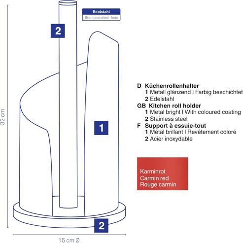 Kela Küchenrollenhalter Stella 15 cm Edelstahl karminrot matt lackiert