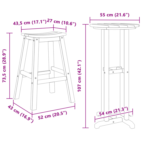 vidaXL Garten Bar Set 3 pcs Weiß HDPE