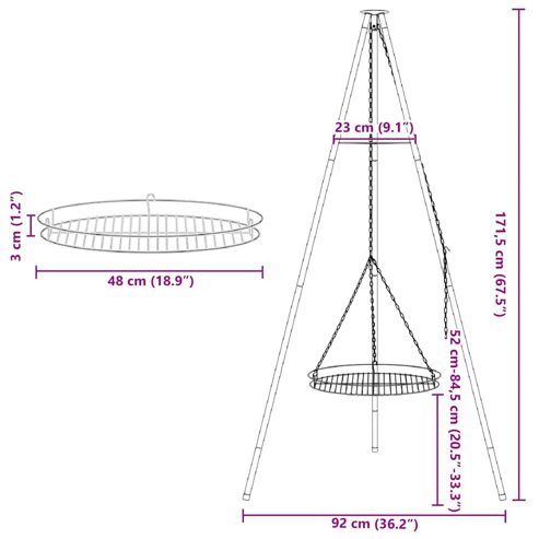 vidaXL Lagerfeuer Stativ Schwarz 92 x 92 x 171.5 cm Stahl