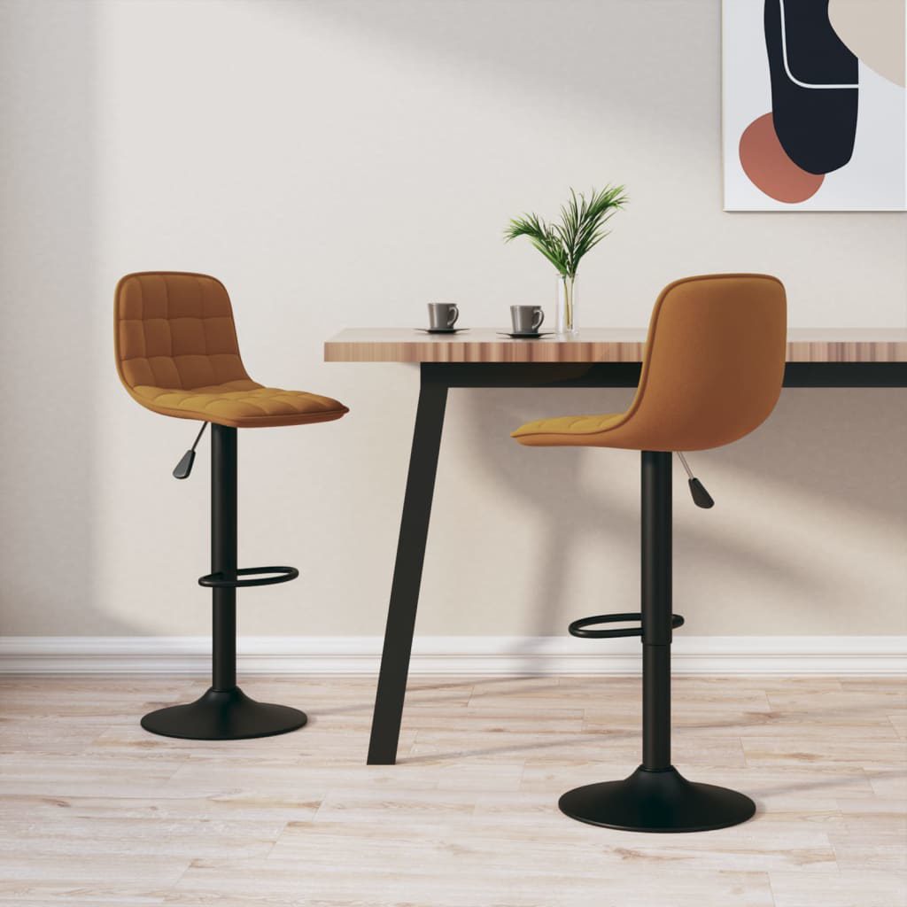 Genießen Sie ein Glas Wein, essen Sie einen Happen oder entspannen Sie sich einfach auf dem Barhocker. Mit weichem Samt bezogen, sorgen diese Barstühle für optimalen Sitzkomfort. Das Gestell aus verchromtem Stahl bietet hohe Stabilität, während die eingebaute Fußstütze zusätzlichen Sitzgenuss bietet. Darüber hinaus lassen sich diese Küchenstühle dank Gasdruckfeder in der Höhe verstellen und sind eine perfekte Ergänzung zu jeder Bar bzw. jedem Essbereich. Sie können auch um 360 Grad gedreht werden, was eine große Flexibilität gewährleistet. ** Farbe: Braun ** Material: Pulverbeschichteter Stahl, Samt (100% Polyester) ** Gesamtabmessungen: 42,5 x 45 x (84-105) cm (B x T x H) ** Sitztiefe: 35 cm ** Standfuß-Durchmesser: 41 cm ** Um 360 Grad drehbar ** Mit Gasdruckfeder ** Mit eingebauter Fußstütze ** Zusammenbau erforderlich: Ja ** Lieferung enthält: ** 2 x Barhocker Maximal 110 kg pro Sitzplatz.