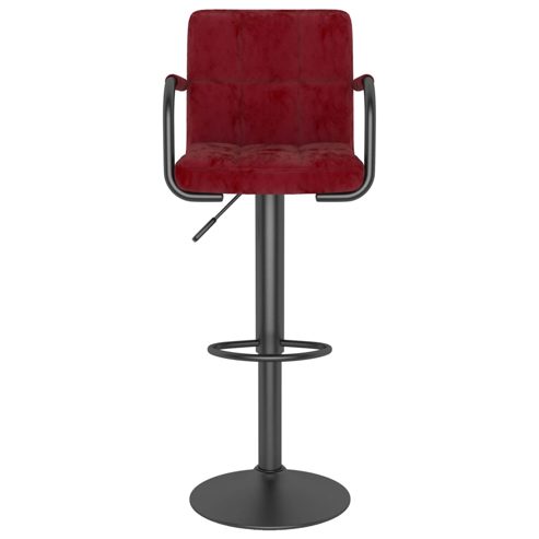 Genießen Sie ein Glas Wein, essen Sie einen Happen oder entspannen Sie sich einfach auf diesem Barhocker. Mit weichem Samt bezogen, bietet Ihnen dieser Barstuhl optimalen Sitzkomfort. Das pulverbeschichtete Stahlgestell sorgt für hohe Stabilität, während die integrierte Fußstütze zusätzlichen Sitzkomfort bietet. Darüber hinaus lässt sich dieser Barhocker dank der Gasdruckfeder in der Höhe verstellen und ist eine perfekte Ergänzung zu jeder Bar bzw. jedem Essbereich. Er lässt sich auch um 360 Grad drehen, was eine große Flexibilität gewährleistet. ** Farbe: Weinrot ** Stahl-Farbe: Schwarz ** Material: Pulverbeschichteter Stahl, Samt (100% Polyester) ** Füllung: Schaumstoff ** Abmessungen: 48 x 47 x (90-111) cm (B x T x H) ** Sitzbreite: 40 cm ** Durchmesser des Standfußes: 38,5 cm ** Um 360 Grad drehbar ** Mit Gasdruckfeder ** Mit eingebauter Fußstütze ** Höhenverstellbar: Ja ** Armlehnen: Ja ** Zusammenbau erforderlich: Ja Maximal 110 kg pro Sitzplatz.