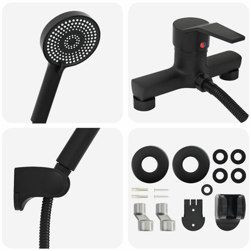 Dieses moderne Duschset verbindet schickes Design mit funktionaler Anwendung. Es ist ideal für den Innenbereich und bietet ein ansprechendes rechteckiges Design, das perfekt ist, um jedes Badezimmer oder Heimfitnessstudio aufzufrischen. Die robuste Messingkonstruktion garantiert Langlebigkeit, während der Hochglanz-Finish eine luxuriöse Note hinzufügt, die das Duschen zum täglichen Vergnügen macht. Premium Messingmaterial Aus hochwertigem Messing gefertigt, bietet dieses Duschset außergewöhnliche Haltbarkeit und ist resistent gegen Abnutzung. So hält es den täglichen Herausforderungen mühelos stand und behält sein frisches Erscheinungsbild. Zudem sorgt die Messingzusammensetzung für Hitzebeständigkeit, sodass es bei verschiedenen Wassertemperaturen konstant funktioniert und die Lebensdauer des Produkts verlängert. Stylische und praktische Komponenten Die perfekt aufeinander abgestimmten Teile des Sets ermöglichen eine einfache Integration in moderne Badezimmer. Die Installation läuft schnell ab und benötigt nur einen Schraubendreher sowie zwei Personen. So wird alles sicher und ordentlich installiert, die Funktionalität bleibt gewahrt und das Nutzererlebnis verbessert sich insgesamt. Eine unkomplizierte Installation sorgt dafür, dass die Teile optimal mit der vorhandenen Sanitärtechnik arbeiten. Modernes Design Mit klaren, minimalistischen Linien verkörpert dieses Duschset die Eleganz modernen Designs. Die schlichte Struktur passt sich wunderbar verschiedenen Badezimmerstilen an, egal ob ultra-modern oder stylish. Diese Ästhetik macht es zu einer zeitlosen Ergänzung, die über Jahre hinweg beliebt bleibt und den Wert deines Zuhauses steigert. Vielseitig einsetzbar Ideal für den Innenbereich, ist dieses Duschset die perfekte Wahl für Wohnbadezimmer und Heimfitnessstudios. Es kombiniert Funktionalität mit Stil und passt sich verschiedenen Umgebungen leicht an. Flexibel einsetzbar ohne an Eleganz zu verlieren, ist es eine praktische Lösung für moderne Inneneinrichtungen. Wenig Pflegeaufwand Halte das Duschset mit minimalem Aufwand in Top-Zustand. Ein einfaches Abwischen mit einem trockenen Tuch reicht, um das glänzende Finish zu erhalten. Aggressive Reinigungsmittel solltest du vermeiden, um die Haltbarkeit des Glanzes zu garantieren. So bleibt das Duschset über lange Zeit hinweg ein toller Blickfang in deinem Badezimmer. ** Farbe: Schwarz ** Gesamtabmessungen: 174 x 21 x 12,5 cm (L x B x H) ** Hauptmaterial: Messing ** Trägermaterial: Kunststoff ** Einhand Bedienung ** Einfach zu benutzen ** Handheld Duschkopf mit 5 Funktionen ** Drehbarer Halter ** Nur für den Innenbereich ** Montage erforderlich: Ja ** Lieferumfang: ** 1 x Handheld Duschkopf ** 1 x Mischbatterie ** 1 x Duschhalter ** 1 x Schlauch ** 1 x Abdeckplatten ** 1 x S-Anschluss