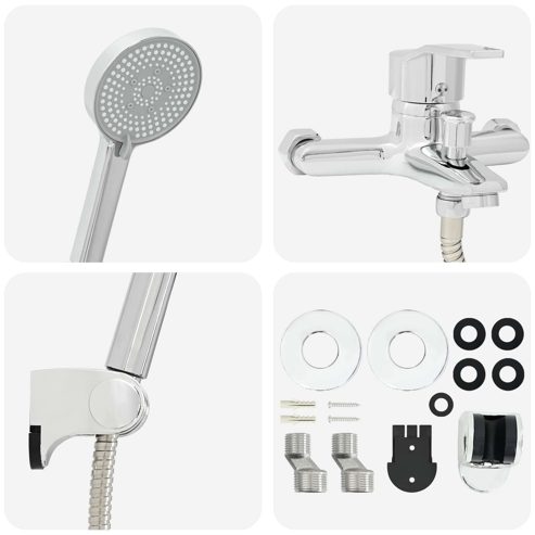 Das Duschset bringt modernen Stil und klasse Funktionalität in jedes Badezimmer. Mit seinem schlichten Design und klaren Linien ist es ideal für alle, die dezente Eleganz schätzen. Genieße das schicke, glänzende Finish, das Licht reflektiert und deinem Raum einen Hauch von Luxus verleiht. Ob beim Start in den Tag oder beim Entspannen – dieses Set sorgt für eine erfrischende Dusche, die du an verschiedene Bedürfnisse anpassen kannst. Hochwertige Materialien: Das Duschset ist fast komplett aus Messing und damit hitzebeständig und langlebig. Ein paar Kunststoffteile sorgen für eine gute Balance zwischen Stabilität und leichtem Design. Mit diesen sorgfältig ausgewählten Materialien bleibt das Duschset feuchtigkeitsresistent und garantiert seine Langlebigkeit. So wird sowohl ein praktisches als auch ein hübsches Feature für dein Badezimmer geschaffen. Komplettausstattung: Alles, was du benötigst, ist im Set enthalten – für eine einfache Montage. Es hat einen modernen, rechteckigen Duschkopf und die einfach zu handhabenden Teile, die die Installation kinderleicht machen. Das Design des Duschkopfs sorgt für einen tollen Wasserfluss und eine erfrischende Dusche. Alle Teile passen super zusammen und schaffen ein angenehmes Duscherlebnis für jeden. Stylische Funktionalität: Mit klaren Linien und einem glänzenden Finish ist dieses Duschset der Inbegriff modernen Designs. Die schlichte Ästhetik wird von der reflektierenden Oberfläche ergänzt, was es zu einer vielseitigen Wahl für viele Badezimmerstile macht. Der minimalistische Look lässt es perfekt in verschiedene Inneneinrichtungen passen und bietet gleichzeitig die ideale Funktionalität. Vielseitige Installation: Das Set eignet sich für G 1/2 Zoll Installationen und ist eine flexibles Lösung für verschiedene Badezimmerkonfigurationen. Die Standardbefestigungen machen das Zusammenbauen leicht, egal ob für Hobby-Handwerker oder Profis. Der universelle Sitz macht es perfekt für Renovierungen, Neubauten oder den Austausch alter Armaturen, sodass alles benutzerfreundlich bleibt. Montageanleitung: Für den Zusammenbau des Duschsets braucht ihr zwei Leute und einen Schraubendreher. Wenn ihr die Anleitung genau befolgt, klappt die Installation effizient und problemlos. Einfach trocken abwischen für die Pflege und vermeidet aggressive Chemikalien, um die glänzende Oberfläche zu erhalten. ** Farbe: Chrom ** Gesamtabmessungen: 174 x 20,5 x 11 cm (L x B x H) ** Hauptmaterial: Messing ** Trägermaterial: Kunststoff ** Einhand Bedienung ** Einfach zu benutzen ** Handheld Duschkopf mit 5 Funktionen ** Drehbarer Halter ** Nur für den Innenbereich ** Montage erforderlich: Ja ** Lieferumfang: ** 1 x Handheld Duschkopf ** 1 x Mischbatterie ** 1 x Duschhalter ** 1 x Schlauch ** 1 x Abdeckplatten ** 1 x S-Anschluss
