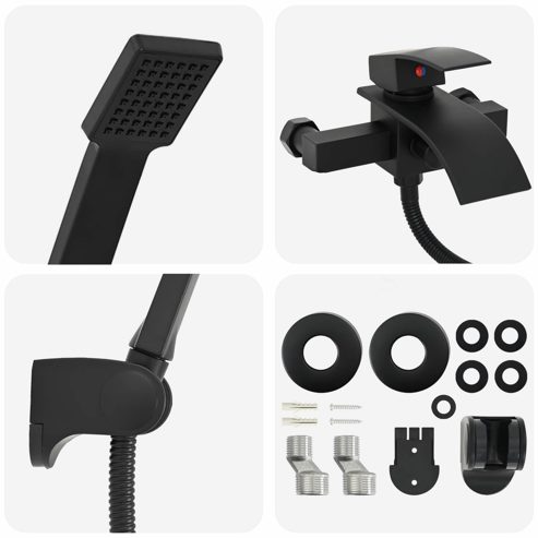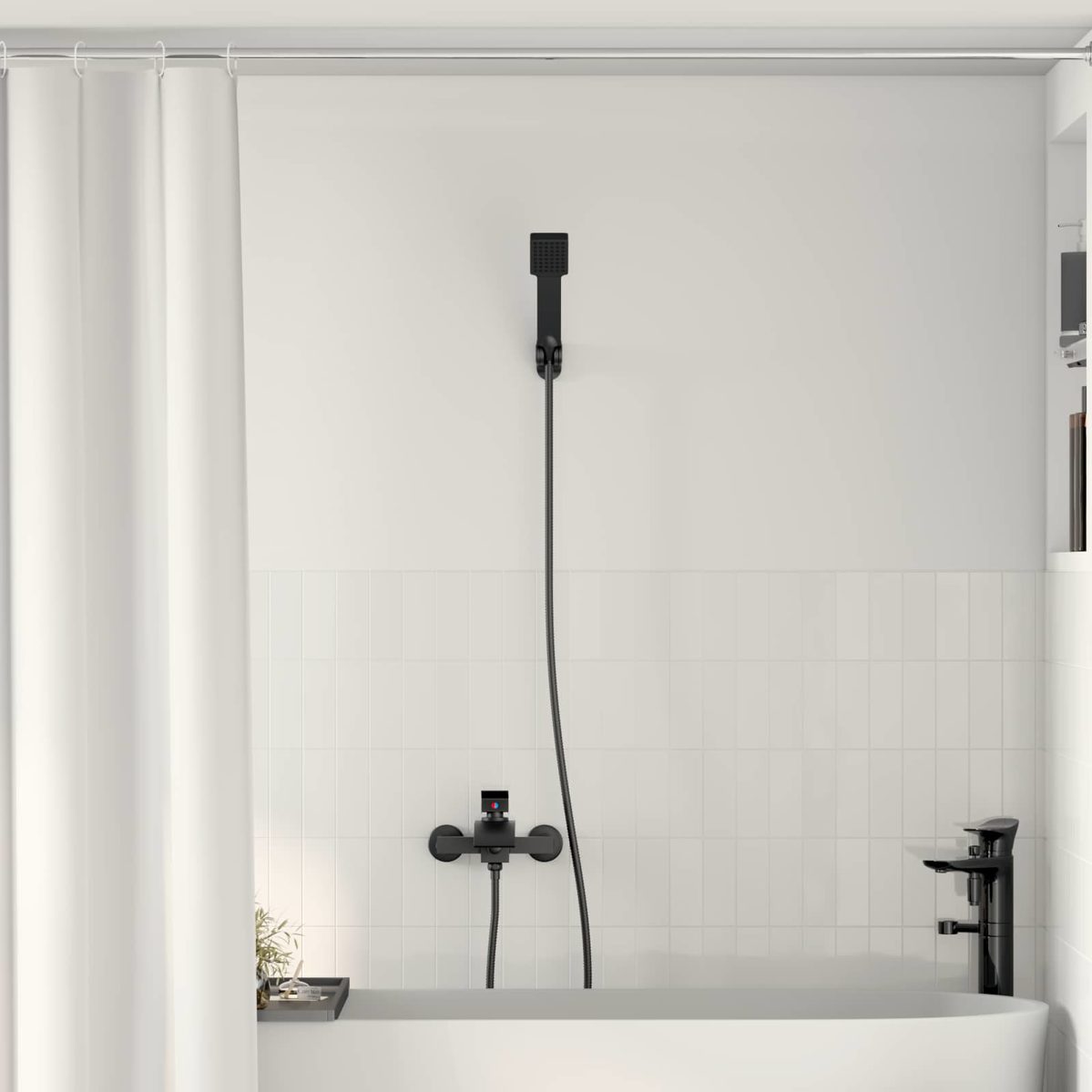 Das Morden Duschset steht für modernes Design und verbindet Funktionalität mit ästhetischer Anziehungskraft. Mit klaren Linien und Schlichtheit ist es die perfekte Ergänzung für jedes moderne Badezimmer oder Fitnessstudio. Seine rechteckige Form und die glänzende Oberfläche machen den Raum eleganter und bieten eine stylische Lösung für deine Duschbedürfnisse. Ideal für alle, die auf Style achten, ohne auf Effizienz zu verzichten. Hochwertiges Messing und Kunststoff sorgen für Langlebigkeit und optische Anziehung. Messingmaterial: Das Duschset aus Messing ist robust und hitzebeständig – ideal für den täglichen Gebrauch! Es behält seinen eleganten Look und seine Stabilität über lange Zeit, was für Zufriedenheit und Sicherheit sorgt. Enthaltene Komponenten: Alle nötigen Teile sind im Set enthalten, was die Installation ganz einfach macht. Jedes Teil trägt zur Funktionalität bei, vom stabilen Duschkopf für gleichmäßigen Wasserfluss bis zum Umsteller, der das Duscherlebnis verbessert. Funktionales Design: Der moderne Stil zeigt sich in der minimalistischen Form – einfach und effizient. Klare Linien machen die Reinigung und Wartung kinderleicht, was Zeit und Aufwand spart. Vielseitige Anwendung: Ideal für Badezimmer und Fitnessräume, passt das Duschset in viele Umgebungen. Egal, ob du einen frischen Start in den Tag brauchst oder nach dem Workout abspülen willst – es sorgt für gleichbleibende Leistung und Zufriedenheit. Pflege & Wartung: Leicht mit einem weichen Tuch abzuwischen. Die glänzende Oberfläche wehrt Wasserflecken ab, sodass der Look immer frisch bleibt. Regelmäßige Pflege garantiert Langlebigkeit und makellosen Zustand. ** Farbe: Schwarz ** Gesamtabmessungen: 18 x 18 x 10,5 cm (L x B x H) ** Hauptmaterial: Messing ** Trägermaterial: Kunststoff ** Einhand Bedienung ** Einfach zu benutzen ** Quadratischer Duschkopf mit 5 Funktionen ** Drehbarer Halter ** Nur für den Innenbereich ** Montage erforderlich: Ja ** Lieferumfang: ** 1 x Handheld Duschkopf ** 1 x Mischbatterie ** 1 x Duschhalter ** 1 x Schlauch ** 1 x Abdeckplatten ** 1 x S-Anschluss