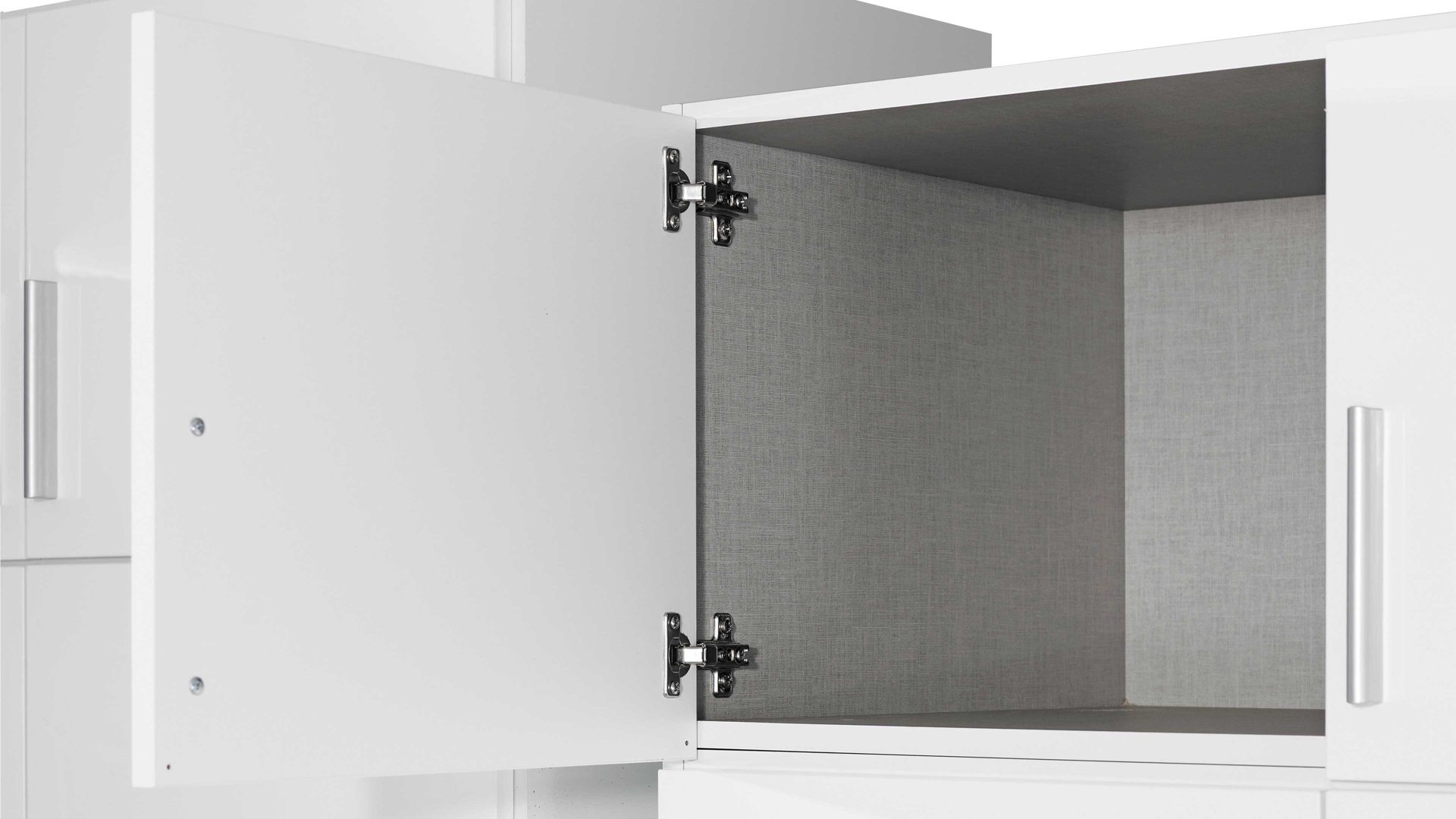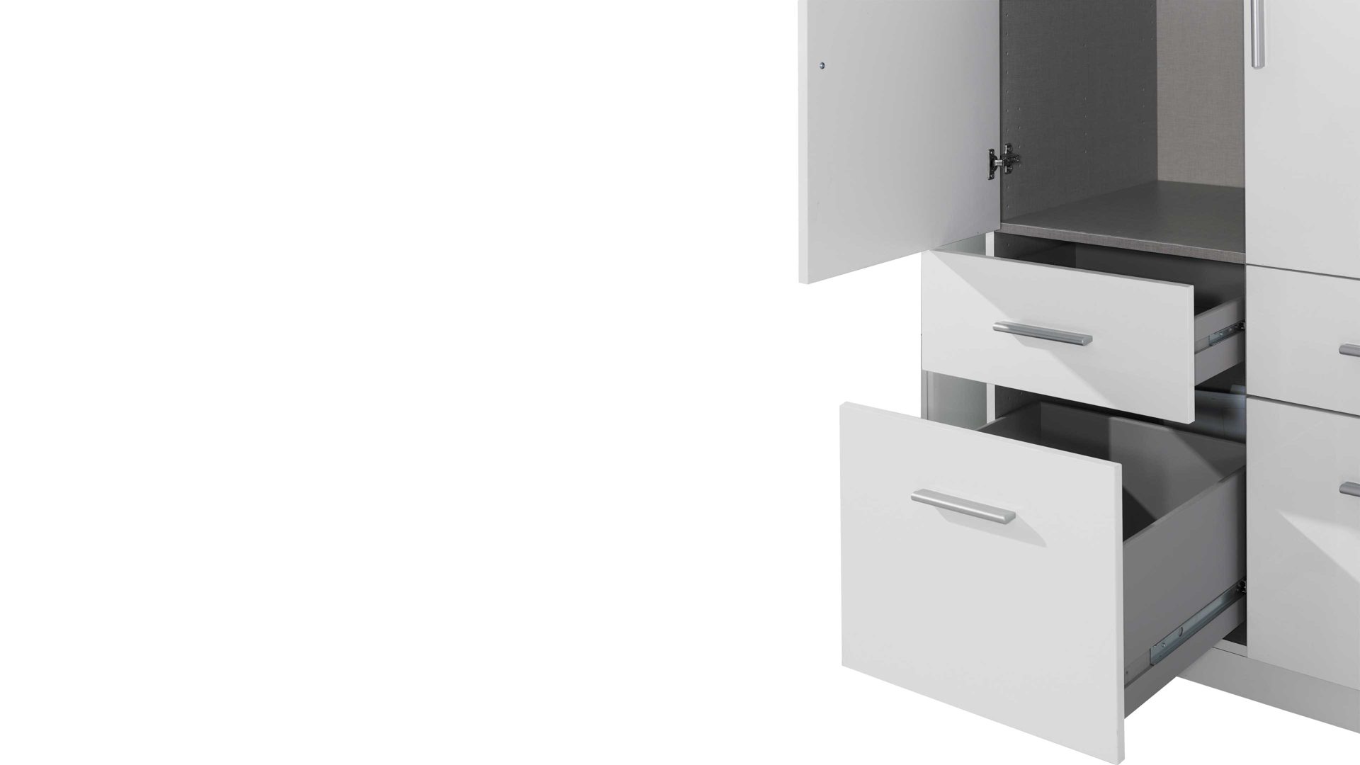 Bringen Sie in den Schubladen beispielsweise Ihre Socken, Schals und Tücher unter. Auf vier Kleiderböden und an einer Kleiderstange findet sich ebenfalls viel Platz für Ordnung. Farblich passt der Kombischrank in jedes Schlafzimmer, da er in Weiß mit jedem Farbton harmoniert. Zudem sind die alpinweißen Kunststoffoberflächen und Hochglanzfronten ausgesprochen pflegeleicht. Falls Sie den Drehtürenschrank Ihren Bedürfnissen anpassen möchten, steht Ihnen dafür ein großer Typenplan zur Verfügung - mit nur einem Klick direkt zum Programm Celle. Optional statten Sie den Funktionsschrank mit praktischer Innenausstattung oder Türdämpfern aus.