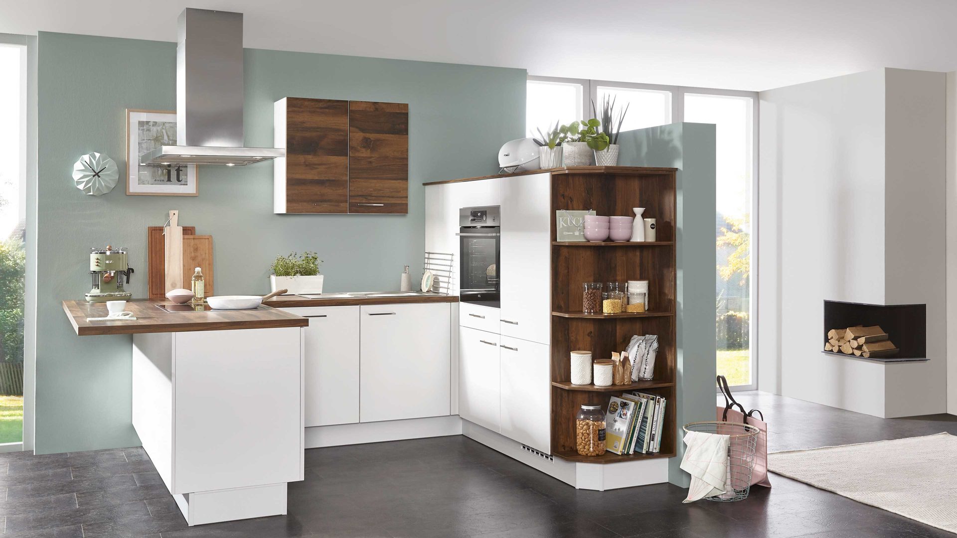 Die nobilia® Einbauküche Laser begeistert mit ihrer klassisch-edlen Optik, der exzellenten Verarbeitung und der hohen Funktionalität. Sie kombiniert alpinweiße Fronten mit dunkler Balkeneiche-Nachbildung. Der Korpus und die Sockelblenden sind ebenfalls in puristischem Weiß gestaltet, während die Arbeitsplatten den warmen Eicheton aufgreifen. Robuste Metallgriffe runden die moderne Systemküche stilsicher ab.
