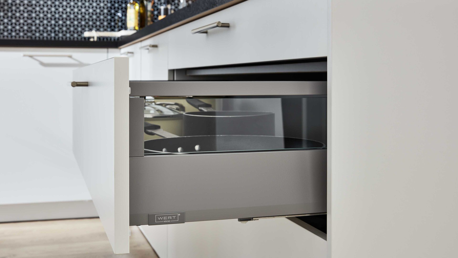 Gefertigt in Deutschland, überzeugt die WERT KÜCHE® Nora durch hochwertige Materialien, präzise Verarbeitung und langlebige Qualität. Eine Küche, die modernes Design, Funktionalität und Alltagstauglichkeit perfekt vereint.