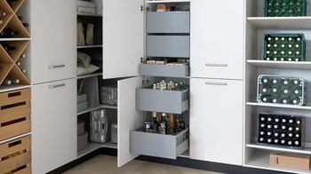 Die Ausstattung überzeugt mit cleveren Funktionen, die Ihren Alltag spürbar erleichtern. Innenauszüge sorgen für einen schnellen Zugriff und eine bessere Übersicht, während der integrierte Besenschrank inklusive Zubehör Platz für größere Reinigungsgeräte bietet.