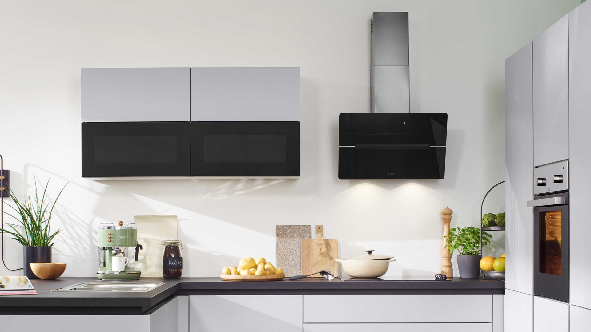 kopffreie Dunsthaube und Auszugschrak unter dem Kochfeld