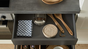 Für saubere Luft und angenehmes Raumklima sorgt die elica Flachschirmhaube 1460D, die mit der Energieeffizienzklasse D (Spektrum A+++ bis D) ausgezeichnet ist. Dezent integriert, fügt sie sich nahtlos in das elegante Gesamtbild der Küche ein.