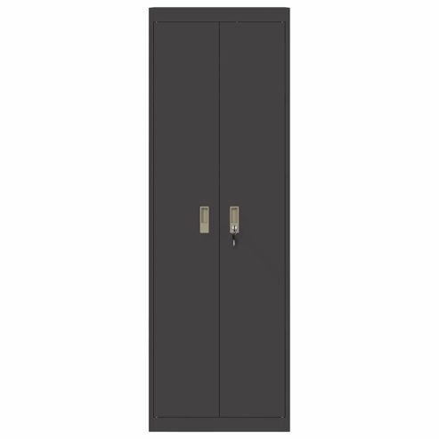 Dieser moderne Aufbewahrungsschrank hat klare Linien und viel Funktionalität; er ist die perfekte Ergänzung für jeden coolen, modernen Raum. Hergestellt aus kaltgewalztem Stahl, bietet er nicht nur Langlebigkeit, sondern auch einen schicken metallischen Look, um wichtige Wertsachen oder Büromaterial zu sichern. Er wurde für vielseitigen Einsatz entwickelt und wertet dein Büro, Arbeitszimmer oder Home-Office mit seiner durchdachten Form und kompakten Größe auf. Kaltgewalzter Stahl: Aus robustem kaltgewalztem Stahl gefertigt, garantiert dieser Schrank lange Haltbarkeit und hält täglichen Abnutzungen stand. Das Material sorgt für einen schicken Look und bleibt über die Jahre stabil. Abschließbare Türen: Die Türen lassen sich abschließen und bieten extra Schutz für deine Wertsachen oder wichtigen Dokumente. Das ist besonders in Büros wichtig, wo Privatsphäre und Vertraulichkeit zählen oder zuhause, wenn es um die Sicherheit von Kindern geht. Industrielles und modernes Design: Das stylische Design kombiniert industrielle Elemente mit modernem Minimalismus und bringt frischen Wind in urbane Lofts oder coole Büros. Die lackierte Oberfläche schützt vor Kratzern und sorgt für einen tollen Glanz, wodurch sie sowohl funktional als auch dekorativ ist. Viel Stauraum: Mit viel Platz im Inneren ist dieser Schrank perfekt für die Aufbewahrung aller möglichen Dinge – von Büromaterialien und Akten bis hin zu persönlichen Sachen und sorgen für Ordnung an vielen Plätzen. Einfache Pflege: Die Pflege des Schranks ist super easy – einmal mit einem feuchten Tuch drüber wischen, und er sieht wieder top aus. Vermeide aggressive Chemikalien, damit die Oberfläche weiter glänzend bleibt und der Schrank immer einen coolen Blickfang für deinen Raum abgibt. ** Farbe: Schwarz ** Material: Kaltgewalzter Stahl ** Oberfläche: Angestrichen ** Gesamtabmessungen: 60 x 40 x 180 cm (L x B x H) ** Gewicht: 17,56 kg ** Reichlich Stauraum ** Rostfrei ** Korrosionsbeständig ** Schließbare Türen ** Nur für den Innenbereich ** Lieferumfang: ** 2 x Aufbewahrungsschrank ** Montage erforderlich: Ja