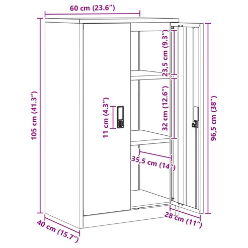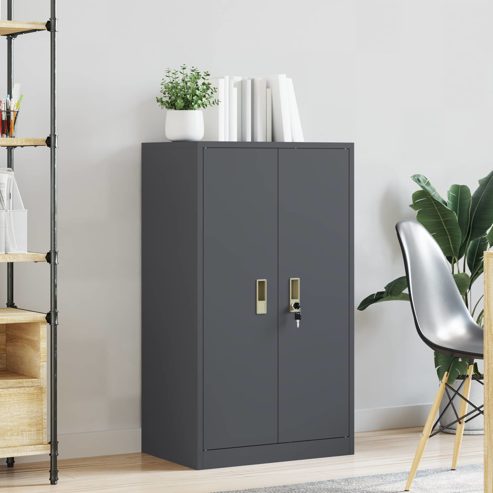 Dieser moderne Stauraumschrank bringt klare, elegante Linien und Funktionalität zusammen. Er ist die perfekte Ergänzung für jeden zeitgenössischen Raum. Aus kaltgewalztem Stahl gefertigt, bietet er nicht nur Stabilität, sondern setzt auch schicke metallische Akzente. Mit seinen durchdachten Details sorgt der abschließbare Schrank für Sicherheit deiner Wertsachen und hilft dir, Ordnung in deinem Büro oder Arbeitsbereich zu halten. Kaltgewalzter Stahl: Dieser Schrank ist aus robustem kaltgewalzten Stahl gemacht. Er bietet hohe Haltbarkeit und bleibt auch bei täglichem Gebrauch stabil. Das Material sieht nicht nur gut aus, sondern sorgt auch dafür, dass der Schrank lange hält und viele Dinge sicher aufbewahrt. Abschließbare Türen: Die Türen sind abschließbar und schützen deine wertvollen oder vertraulichen Dinge. Diese Eigenschaft ist besonders wichtig im Büro, wo Privatsphäre und Vertraulichkeit wichtig sind, oder zu Hause, wenn Kinder da sind. Industrielles & modernes Design: Die Kombination aus industriellen und modernen Designelementen verleiht deinem Raum einen coolen Touch. Die lackierte Oberfläche schützt vor Kratzern und sorgt für einen tollen Glanz, was den Schrank sowohl funktional als auch stylisch macht. Viel Stauraum: Mit viel Platz ist der Schrank ideal für alles, was du aufbewahren möchtest – seien es Büroartikel, Ordner oder persönliche Gegenstände. So wird die Organisation zum Kinderspiel! Einfache Pflege & Wartung: Der Schrank ist super pflegeleicht! Ein einfaches Abwischen mit einem feuchten Tuch reicht, um ihn sauber zu halten. Vermeide aggressive Chemikalien, damit die Oberfläche schön bleibt und der Schrank weiterhin im besten Licht dasteht. ** Farbe: Anthrazit ** Material: Kaltgewalzter Stahl ** Oberfläche: Angestrichen ** Gesamtabmessungen: 60 x 40 x 105 cm (L x B x H) ** Gewicht: 19,56 kg ** Reichlich Stauraum ** Rostfrei ** Korrosionsbeständig ** Schließbare Türen ** Nur für den Innenbereich ** Lieferumfang: ** 1 x Aufbewahrungsschrank ** Montage erforderlich: Ja