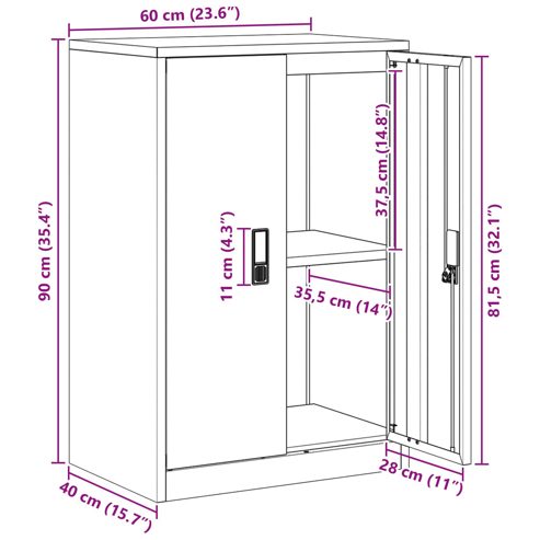 Dieser moderne Stauraumschrank bringt klare, elegante Linien und Funktionalität zusammen. Er ist die perfekte Ergänzung für jeden zeitgenössischen Raum. Aus kaltgewalztem Stahl gefertigt, bietet er nicht nur Stabilität, sondern setzt auch schicke metallische Akzente. Mit seinen durchdachten Details sorgt der abschließbare Schrank für Sicherheit deiner Wertsachen und hilft dir, Ordnung in deinem Büro oder Arbeitsbereich zu halten. Kaltgewalzter Stahl: Dieser Schrank ist aus robustem kaltgewalzten Stahl gemacht. Er bietet hohe Haltbarkeit und bleibt auch bei täglichem Gebrauch stabil. Das Material sieht nicht nur gut aus, sondern sorgt auch dafür, dass der Schrank lange hält und viele Dinge sicher aufbewahrt. Abschließbare Türen: Die Türen sind abschließbar und schützen deine wertvollen oder vertraulichen Dinge. Diese Eigenschaft ist besonders wichtig im Büro, wo Privatsphäre und Vertraulichkeit wichtig sind, oder zu Hause, wenn Kinder da sind. Industrielles & modernes Design: Die Kombination aus industriellen und modernen Designelementen verleiht deinem Raum einen coolen Touch. Die lackierte Oberfläche schützt vor Kratzern und sorgt für einen tollen Glanz, was den Schrank sowohl funktional als auch stylisch macht. Viel Stauraum: Mit viel Platz ist der Schrank ideal für alles, was du aufbewahren möchtest – seien es Büroartikel, Ordner oder persönliche Gegenstände. So wird die Organisation zum Kinderspiel! Einfache Pflege & Wartung: Der Schrank ist super pflegeleicht! Ein einfaches Abwischen mit einem feuchten Tuch reicht, um ihn sauber zu halten. Vermeide aggressive Chemikalien, damit die Oberfläche schön bleibt und der Schrank weiterhin im besten Licht dasteht. ** Farbe: Weiß ** Material: Kaltgewalzter Stahl ** Oberfläche: Angestrichen ** Gesamtabmessungen: 60 x 40 x 90 cm (L x B x H) ** Gewicht: 16,5 kg ** Reichlich Stauraum ** Rostfrei ** Korrosionsbeständig ** Schließbare Türen ** Nur für den Innenbereich ** Lieferumfang: ** 1 x Aufbewahrungsschrank ** Montage erforderlich: Ja