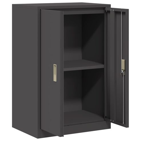 Dieser moderne Stauraumschrank bringt klare, elegante Linien und Funktionalität zusammen. Er ist die perfekte Ergänzung für jeden zeitgenössischen Raum. Aus kaltgewalztem Stahl gefertigt, bietet er nicht nur Stabilität, sondern setzt auch schicke metallische Akzente. Mit seinen durchdachten Details sorgt der abschließbare Schrank für Sicherheit deiner Wertsachen und hilft dir, Ordnung in deinem Büro oder Arbeitsbereich zu halten. Kaltgewalzter Stahl: Dieser Schrank ist aus robustem kaltgewalzten Stahl gemacht. Er bietet hohe Haltbarkeit und bleibt auch bei täglichem Gebrauch stabil. Das Material sieht nicht nur gut aus, sondern sorgt auch dafür, dass der Schrank lange hält und viele Dinge sicher aufbewahrt. Abschließbare Türen: Die Türen sind abschließbar und schützen deine wertvollen oder vertraulichen Dinge. Diese Eigenschaft ist besonders wichtig im Büro, wo Privatsphäre und Vertraulichkeit wichtig sind, oder zu Hause, wenn Kinder da sind. Industrielles & modernes Design: Die Kombination aus industriellen und modernen Designelementen verleiht deinem Raum einen coolen Touch. Die lackierte Oberfläche schützt vor Kratzern und sorgt für einen tollen Glanz, was den Schrank sowohl funktional als auch stylisch macht. Viel Stauraum: Mit viel Platz ist der Schrank ideal für alles, was du aufbewahren möchtest – seien es Büroartikel, Ordner oder persönliche Gegenstände. So wird die Organisation zum Kinderspiel! Einfache Pflege & Wartung: Der Schrank ist super pflegeleicht! Ein einfaches Abwischen mit einem feuchten Tuch reicht, um ihn sauber zu halten. Vermeide aggressive Chemikalien, damit die Oberfläche schön bleibt und der Schrank weiterhin im besten Licht dasteht. ** Farbe: Schwarz ** Material: Kaltgewalzter Stahl ** Oberfläche: Angestrichen ** Gesamtabmessungen: 60 x 40 x 90 cm (L x B x H) ** Gewicht: 16,5 kg ** Reichlich Stauraum ** Rostfrei ** Korrosionsbeständig ** Schließbare Türen ** Nur für den Innenbereich ** Lieferumfang: ** 1 x Aufbewahrungsschrank ** Montage erforderlich: Ja