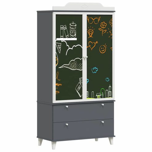 vidaXL Kreidetafel Kleiderschrank mit Tür Grau und Weiß Holzwerkstoff