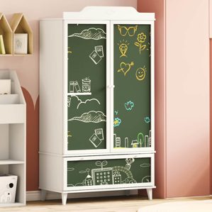 vidaXL Kreidetafel Kleiderschrank mit Schubladen Weiß Holzwerkstoff