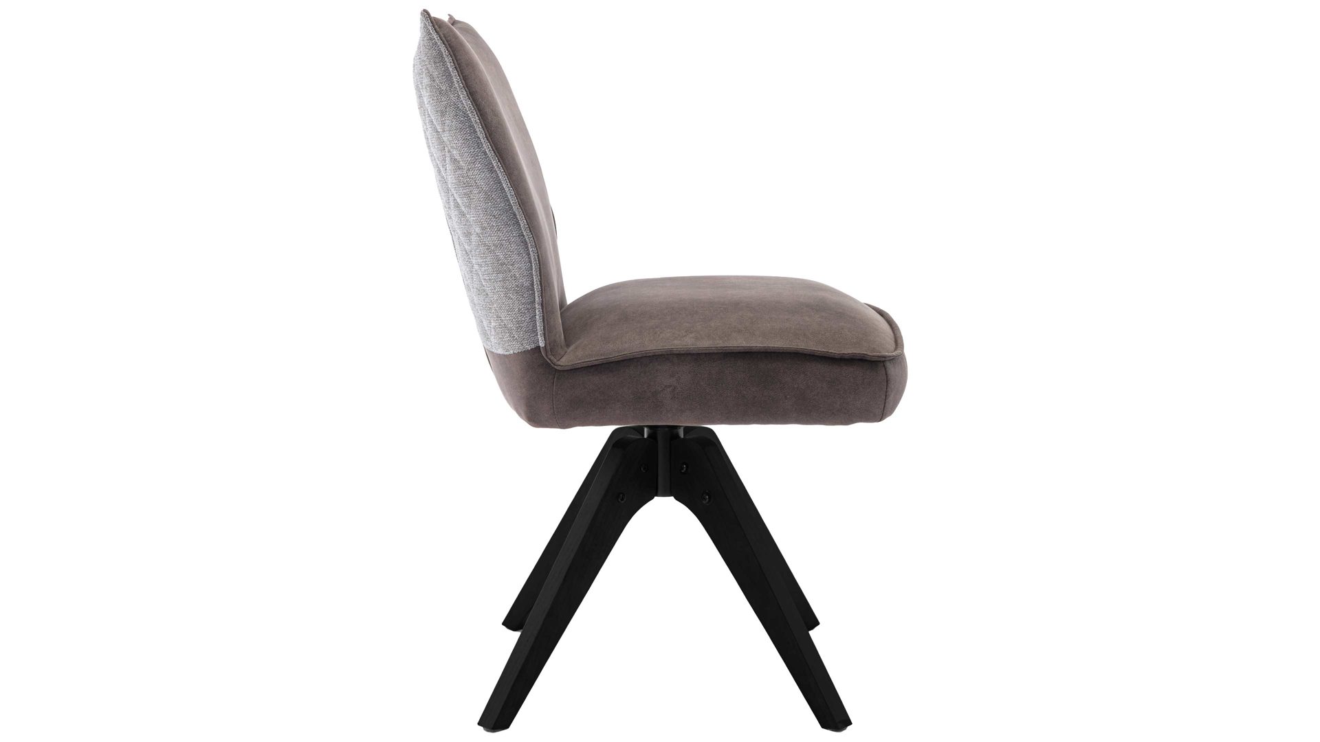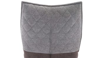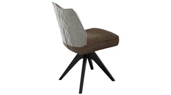 brauner Stoffbezug im Antikleder-Look, kombiniert mit beige-braun meliertem Stoffbezug mit Rautensteppung und mattschwarzem Metall