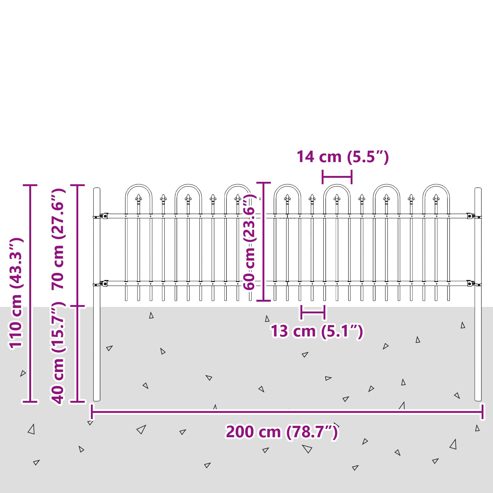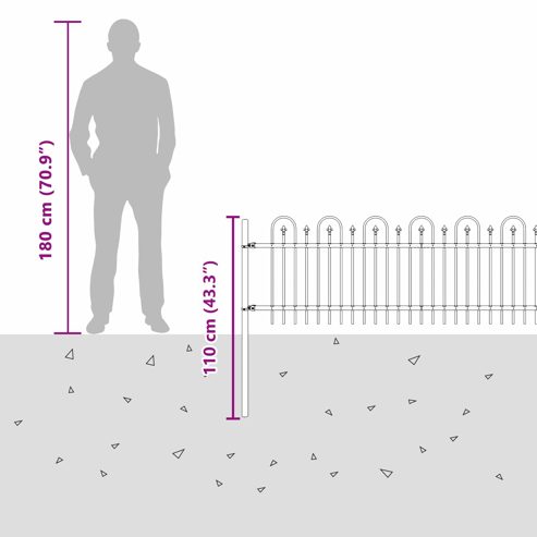 vidaXL Spitzenbogenzaun Schwarz 200 x 130 cm Pulverbeschichteter Stahl