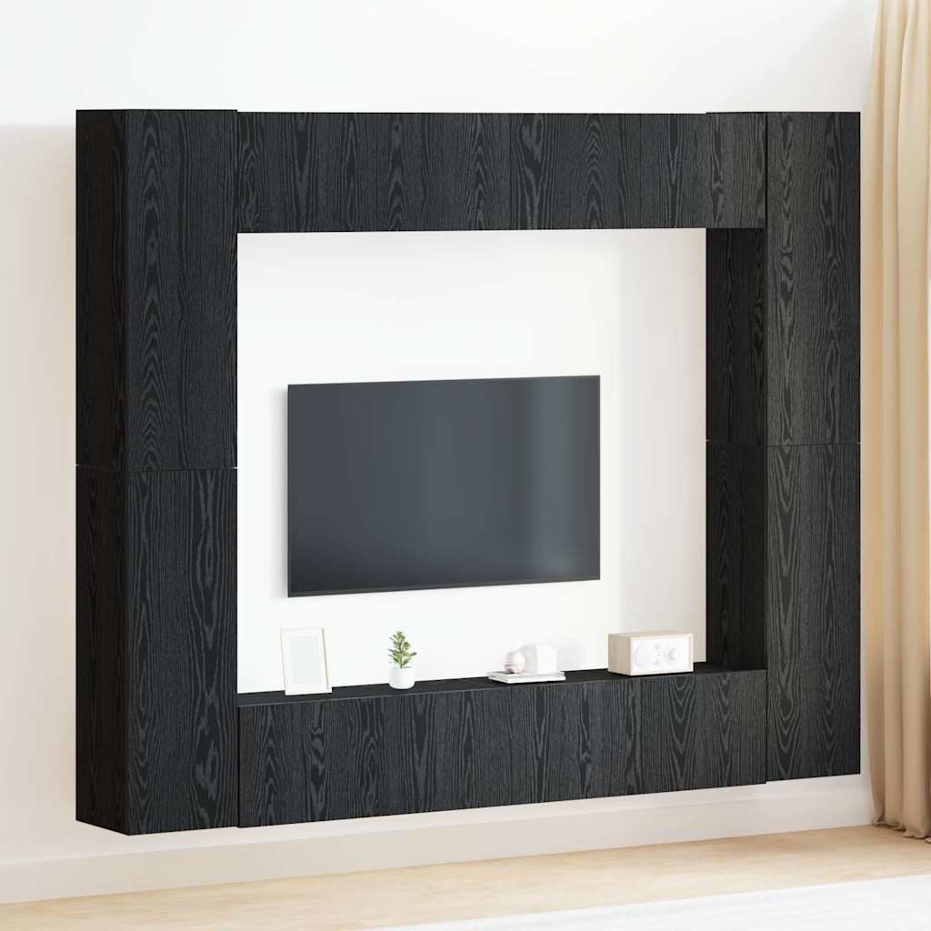 vidaXL 8-teiliges TV Schrank Set -Wandmontiert, Schwarz Eiche, MDF